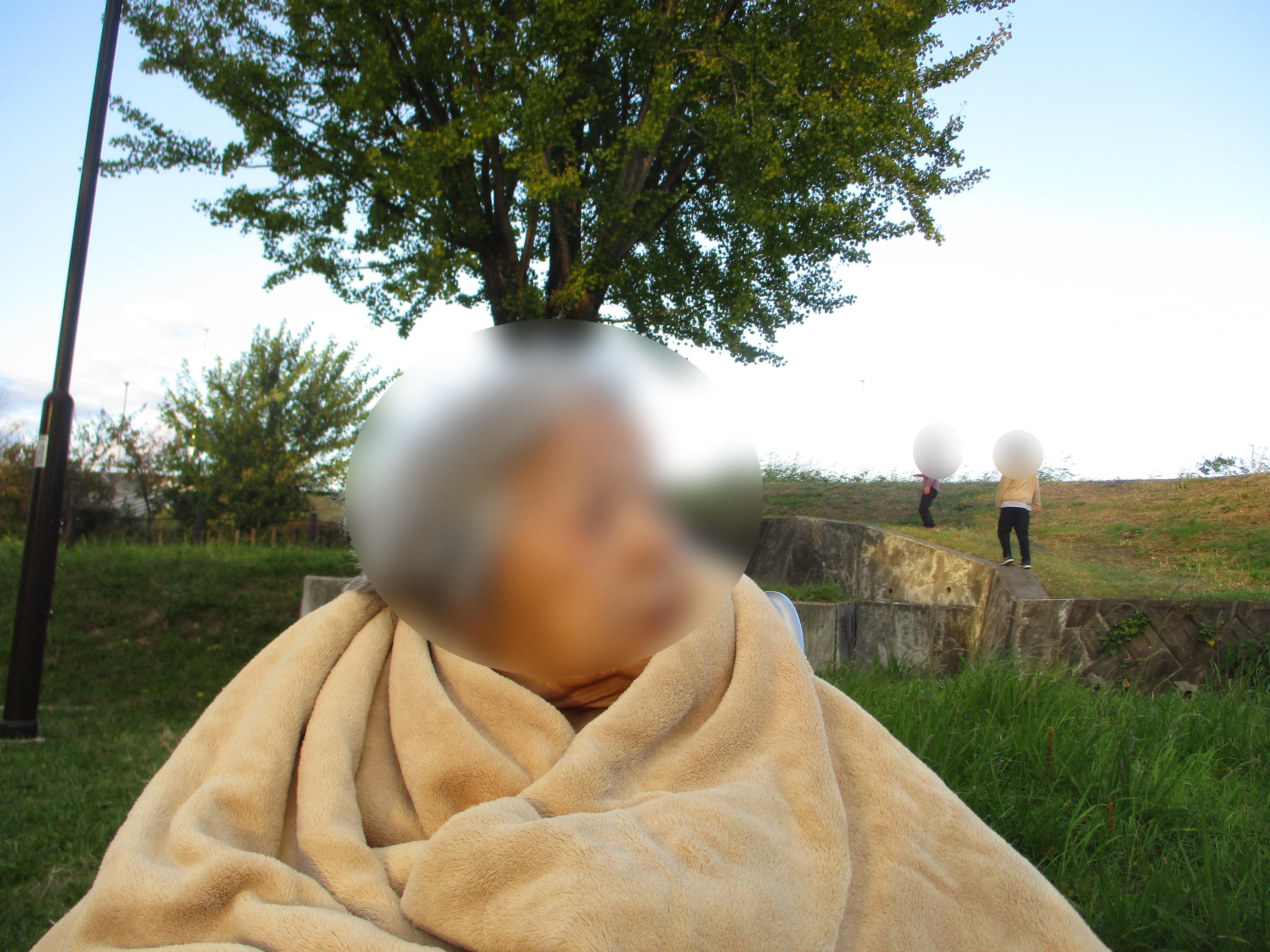 紅葉の木々を見たり、寒いのに半袖で遊んでいる子供らの