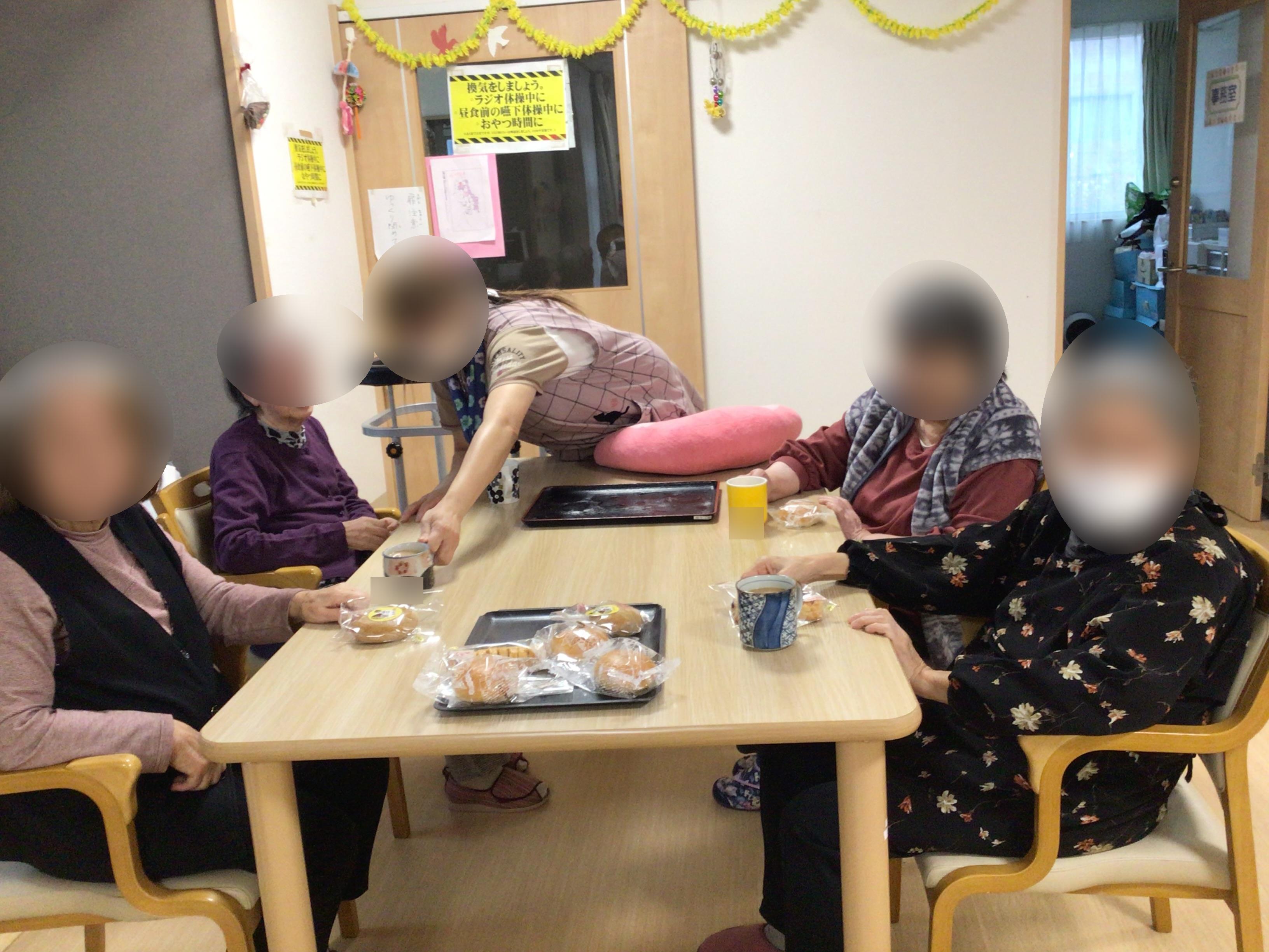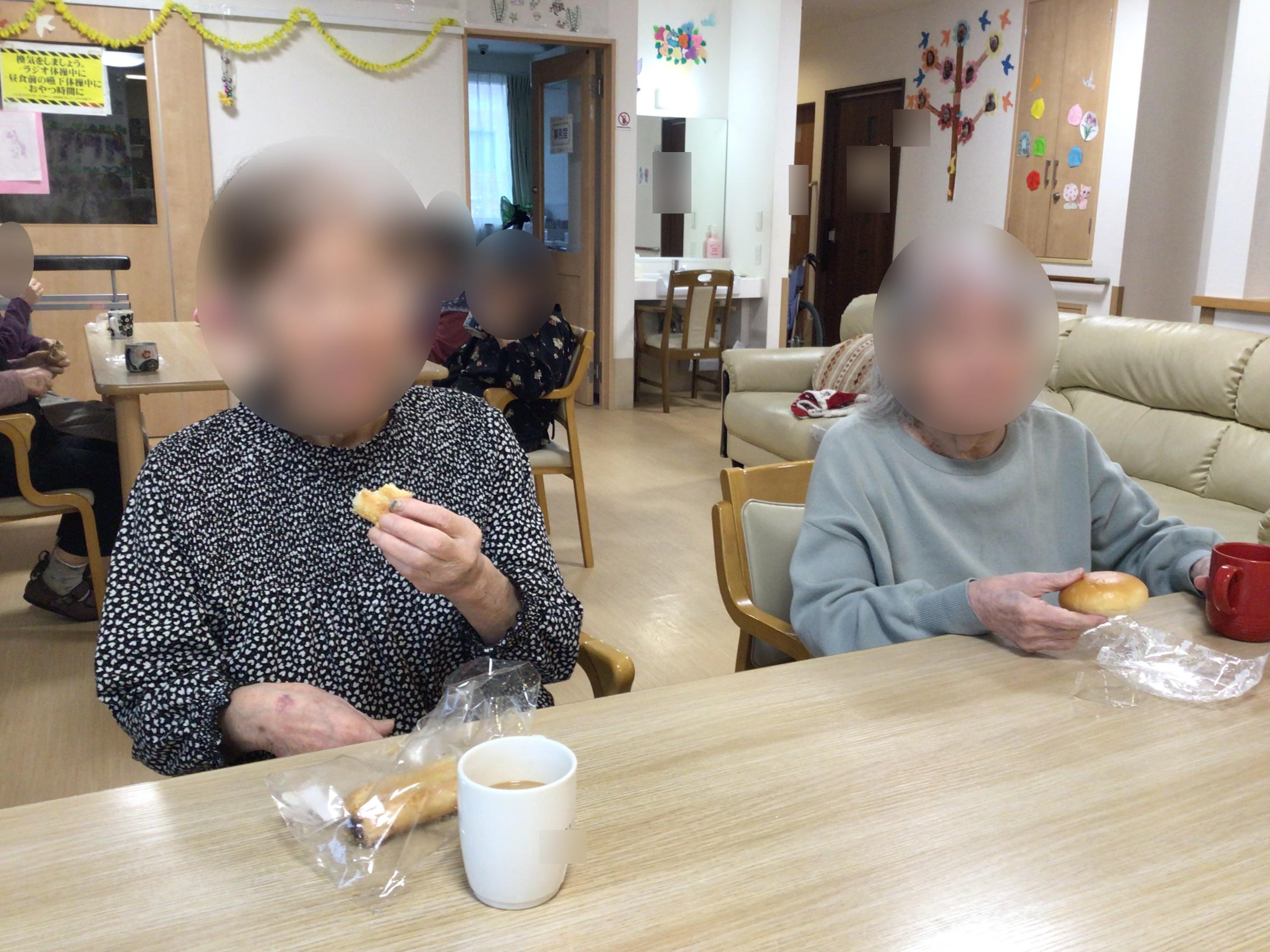 ご利用者様と買いに出掛けさせて頂いたパンでおやつタイムです