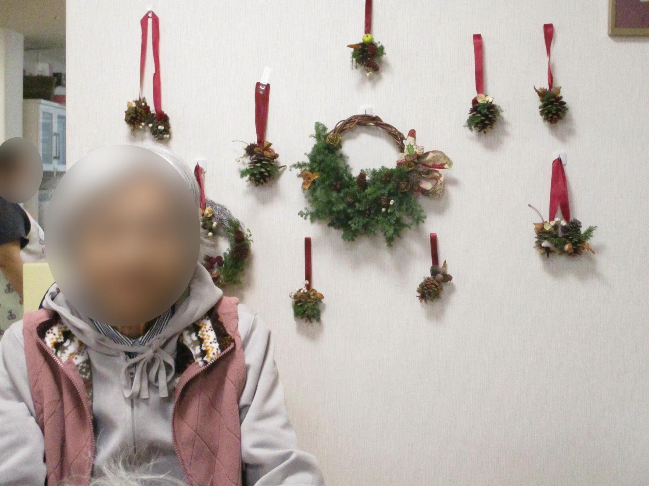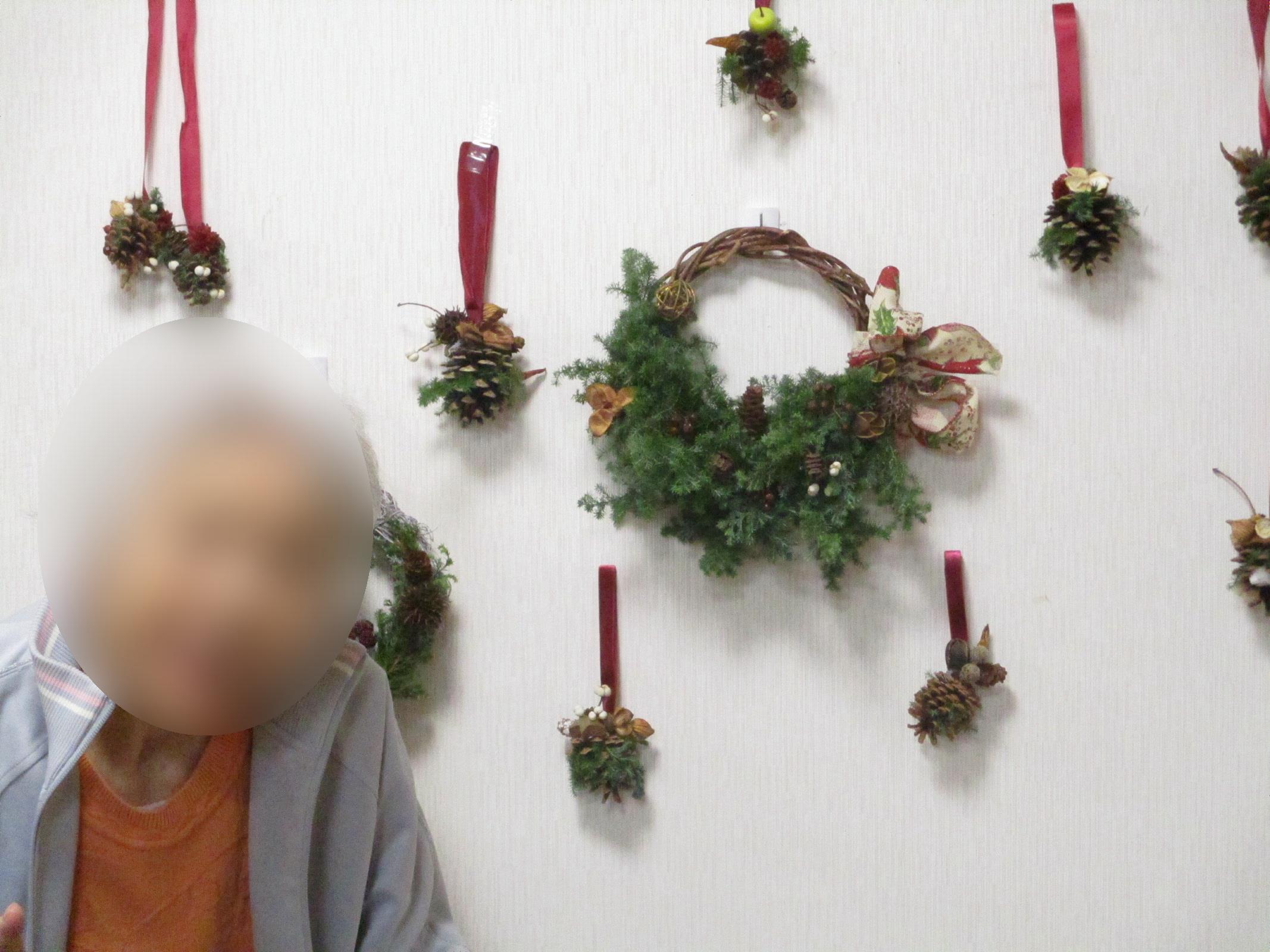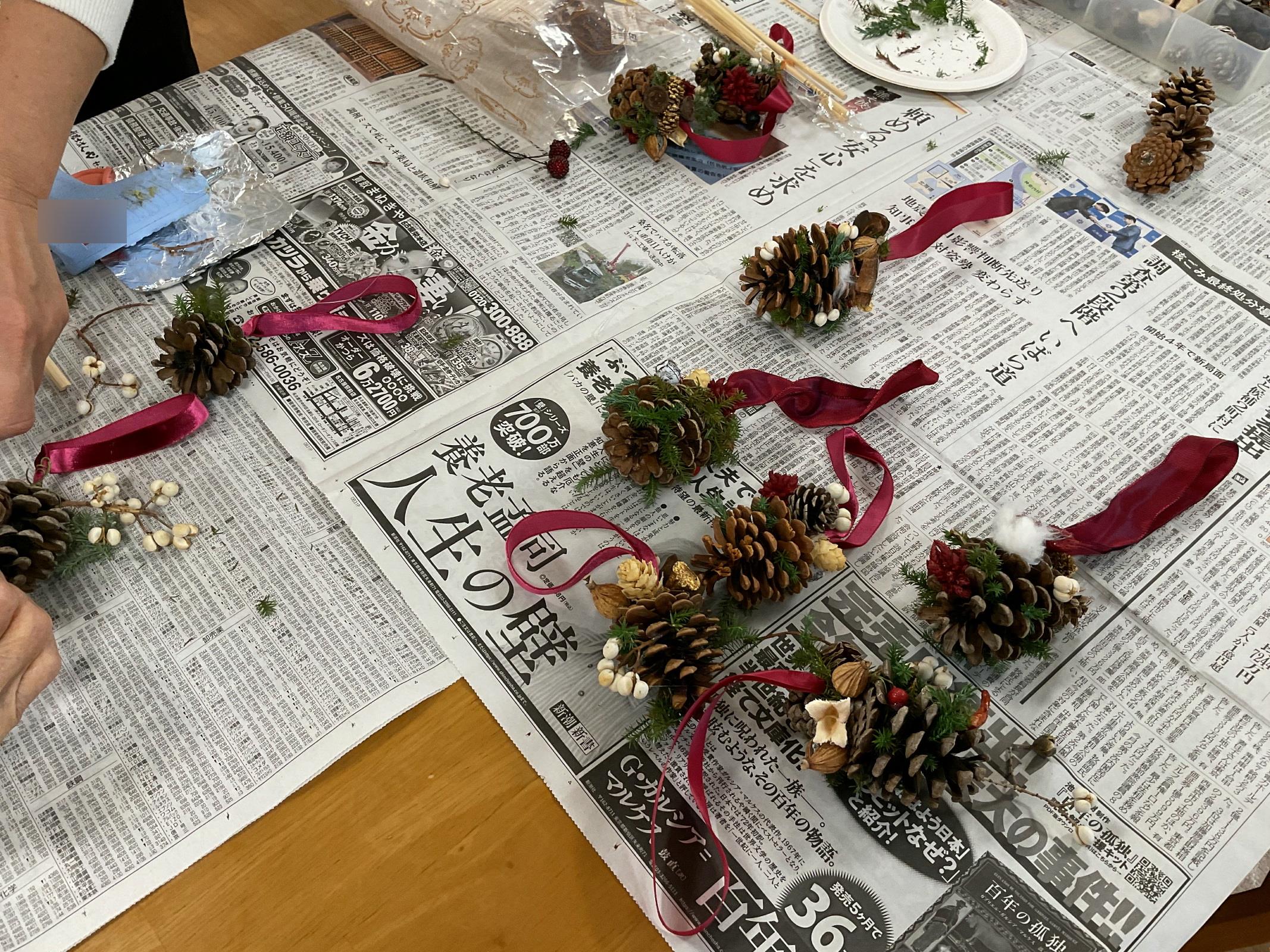 1階のクリスマスリース作成の様子です