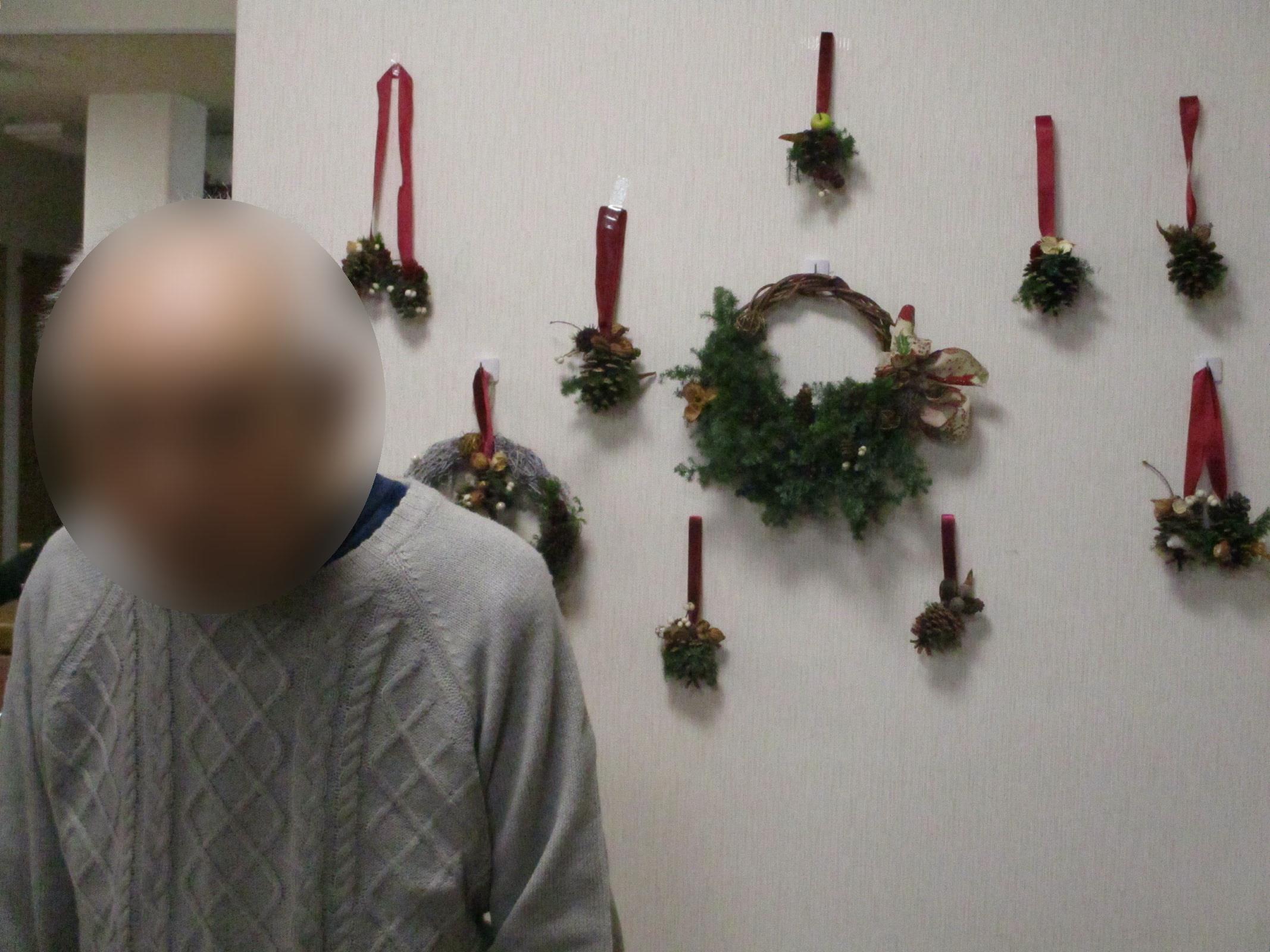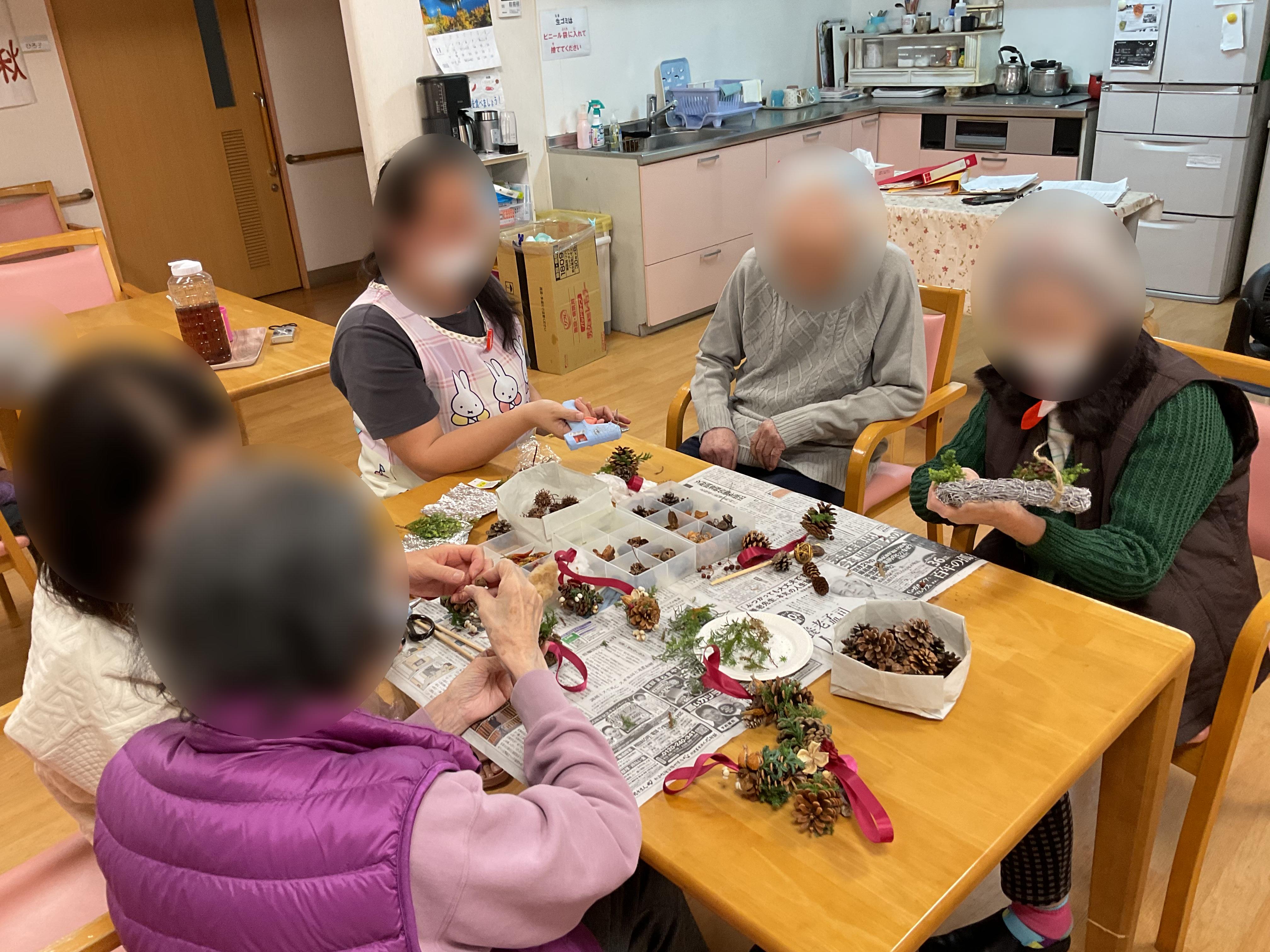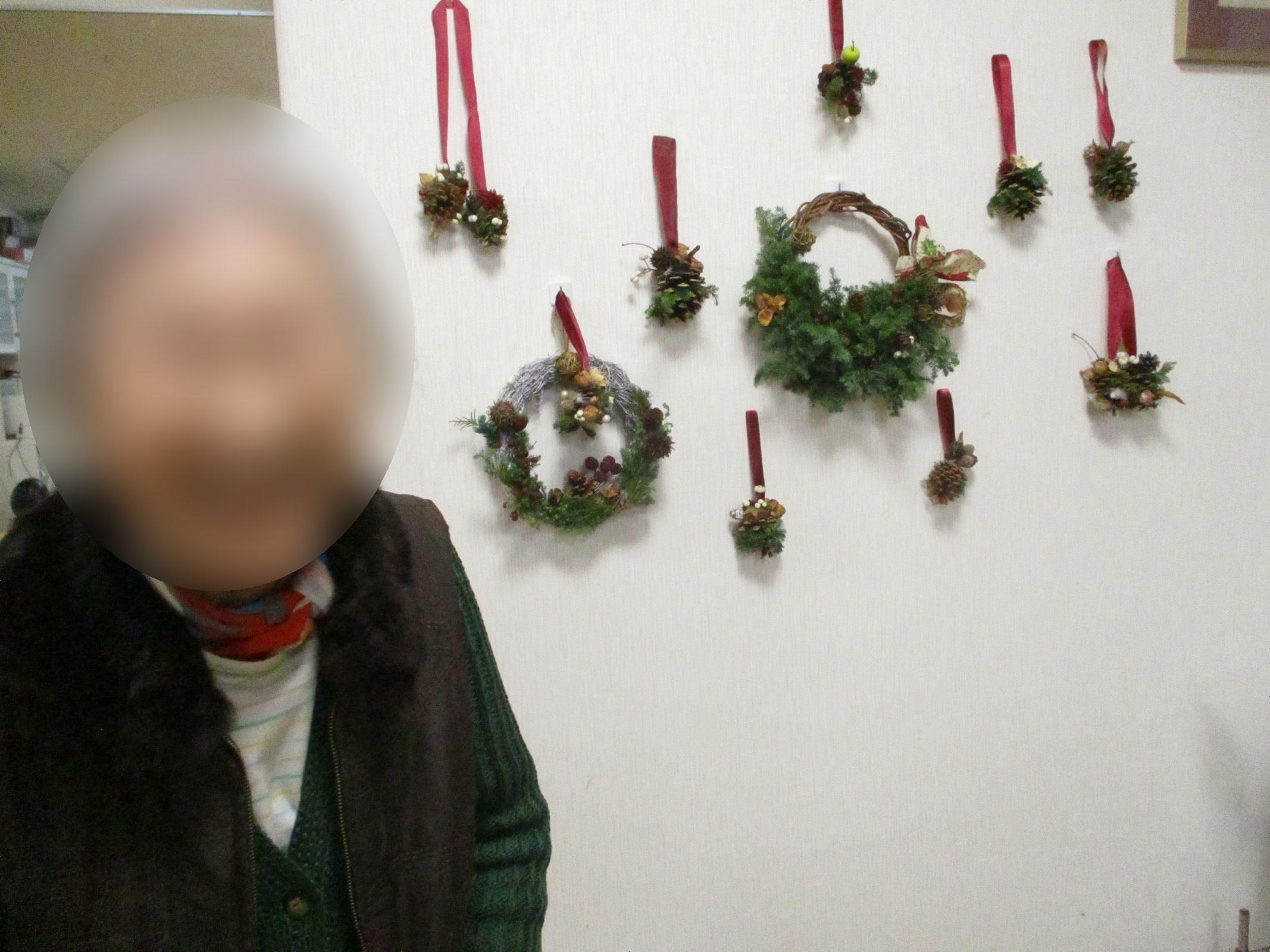 1階のクリスマスリース作成の様子です