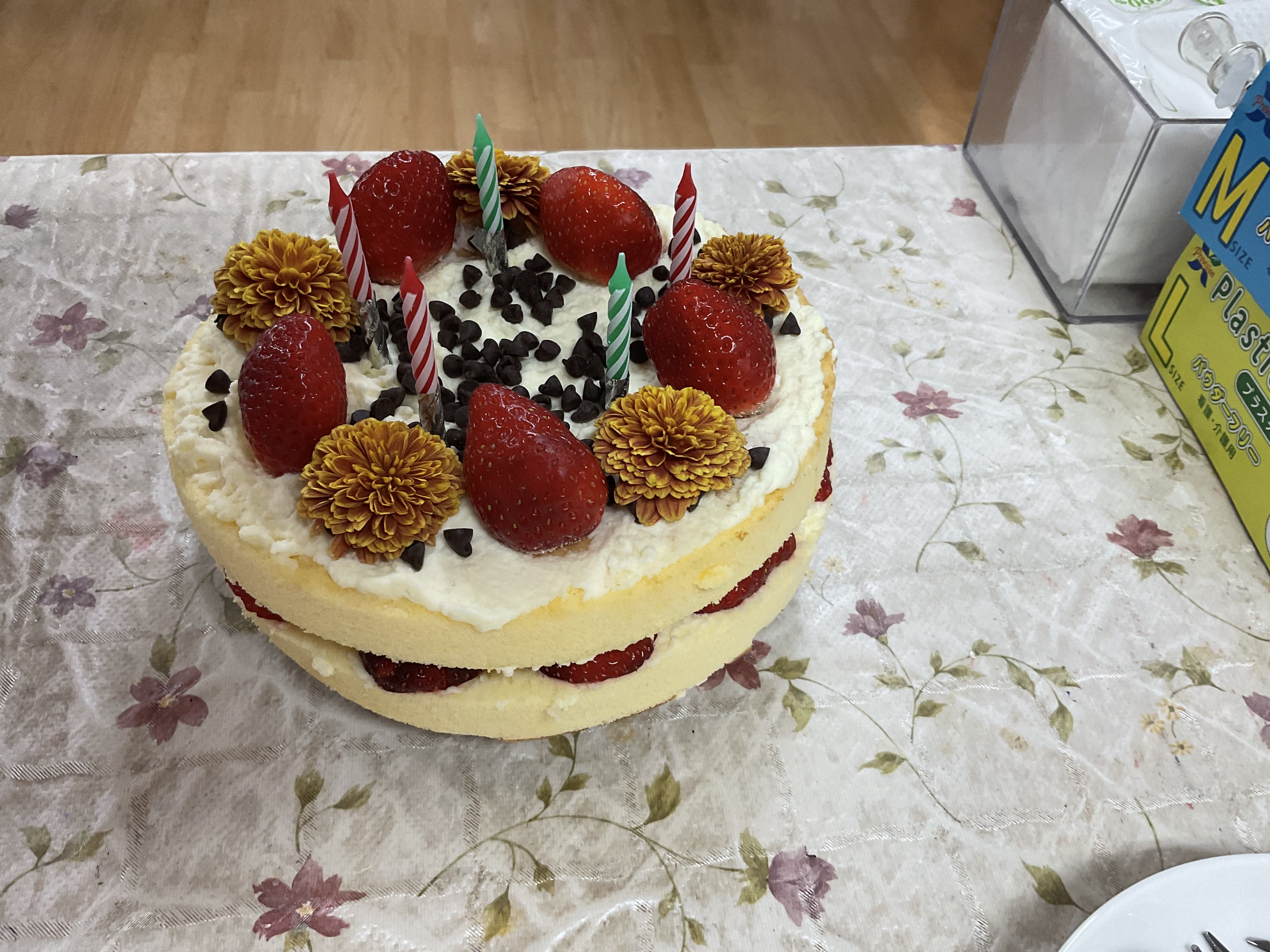 手作りのケーキでお祝いし、皆様で
