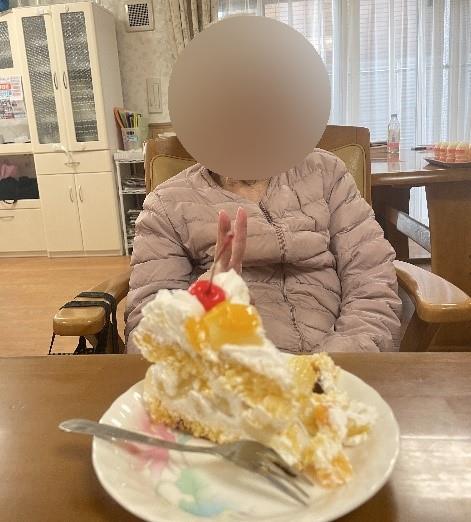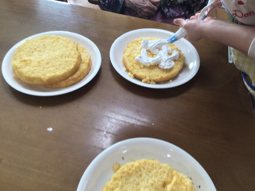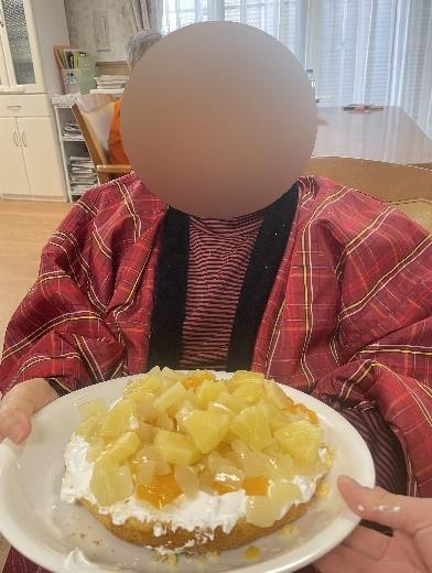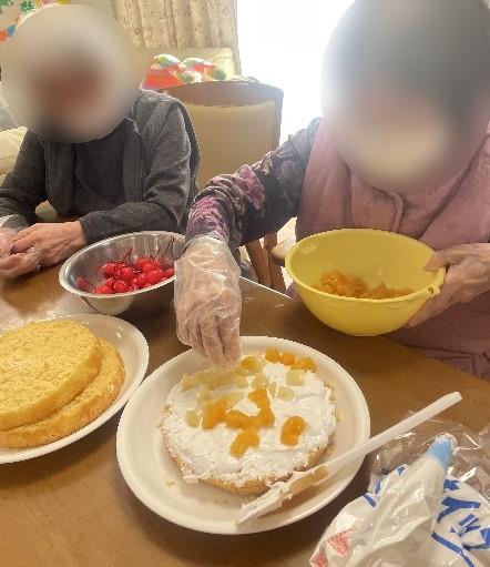 職員が焼いたケーキをご利用者様がデコレーションしてくださいましたhappy01heart04