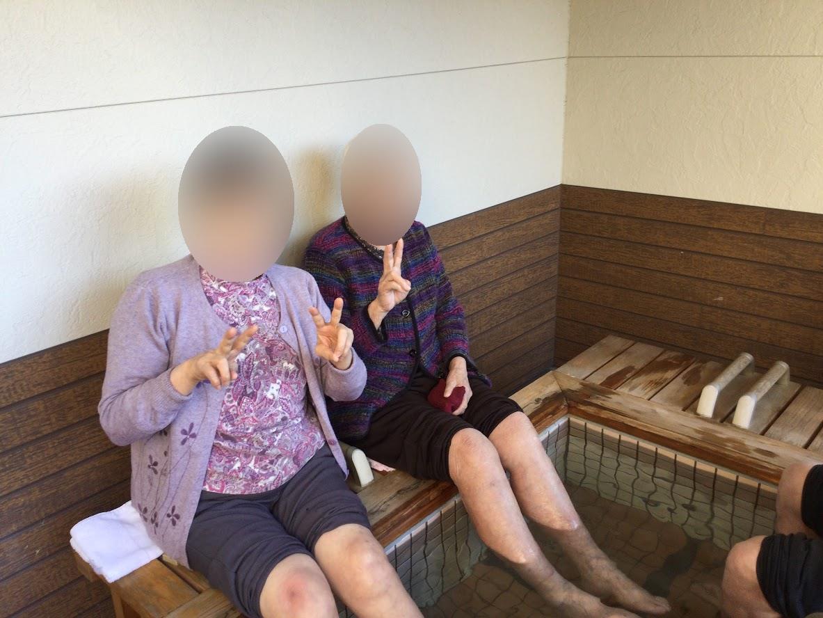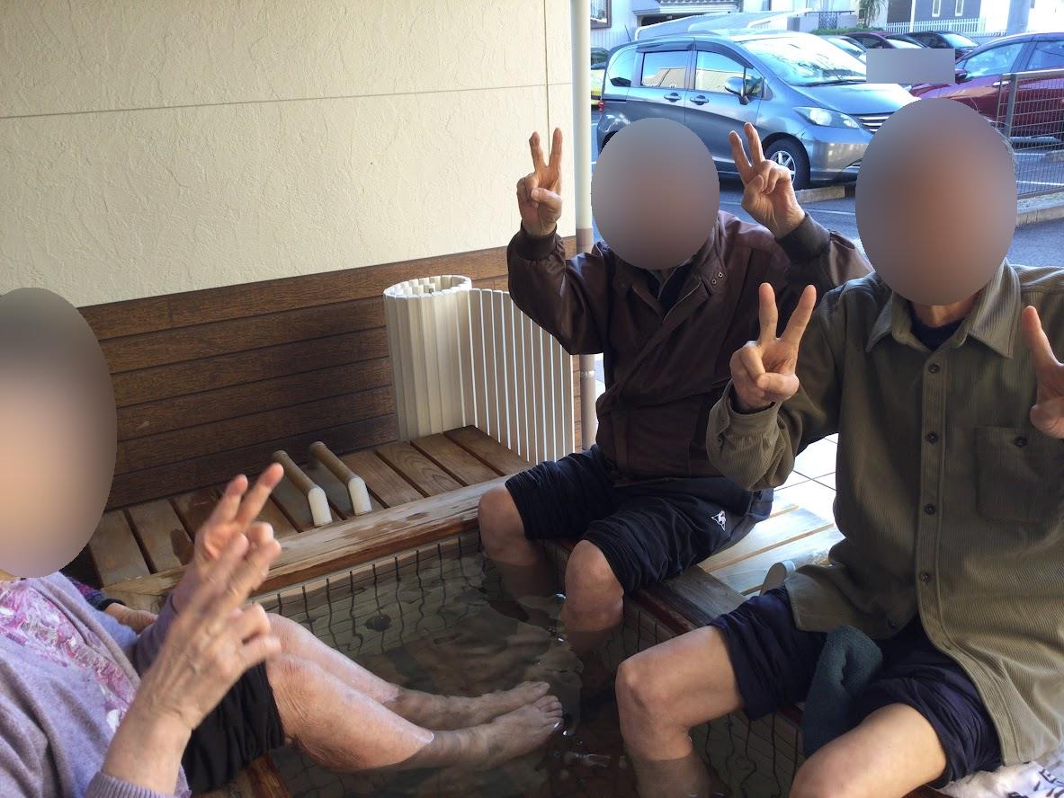先日、職員と利用者様と掃除をした足湯に入っていただきました