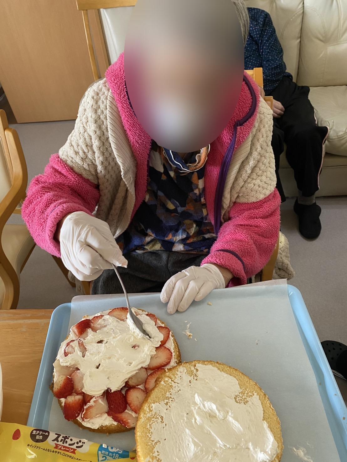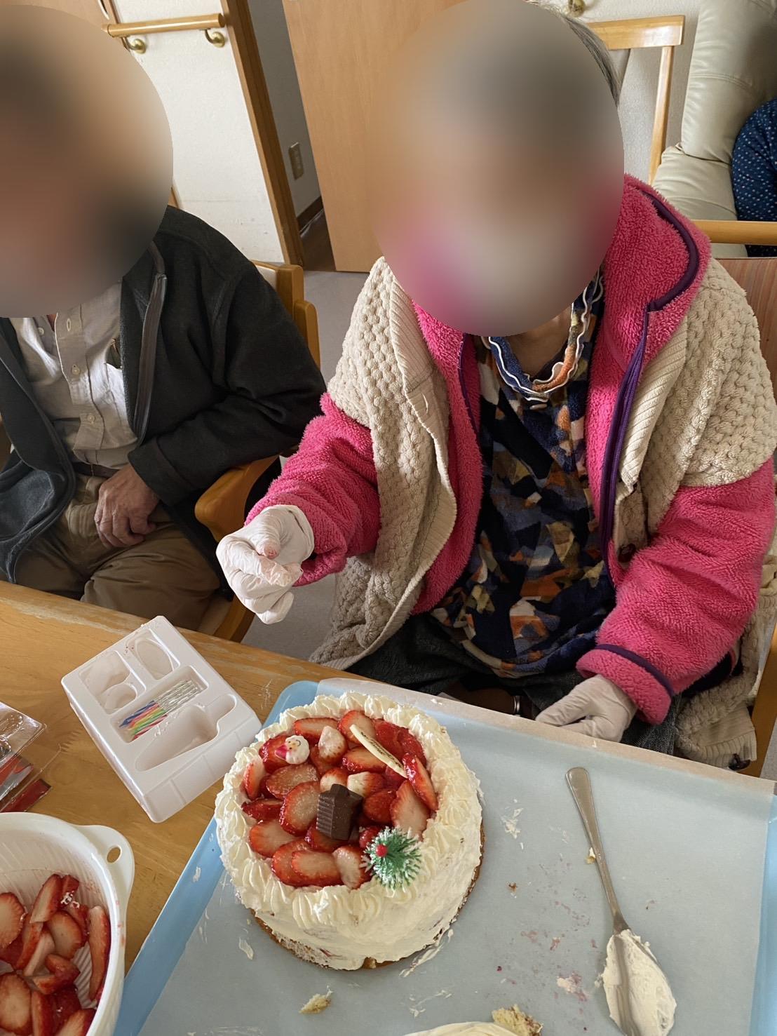 クリスマスケーキを入居者様と作って、皆様でいただきました