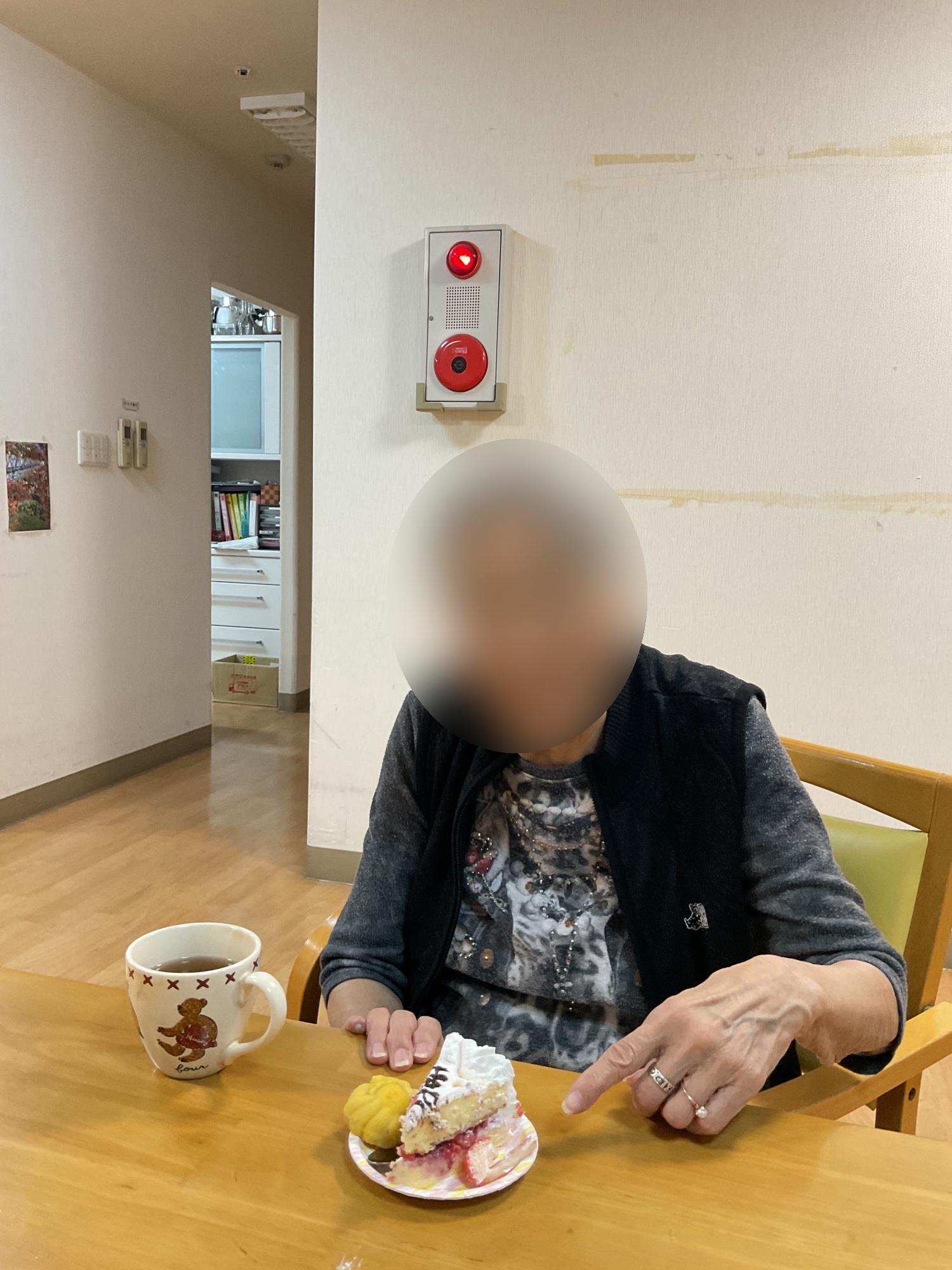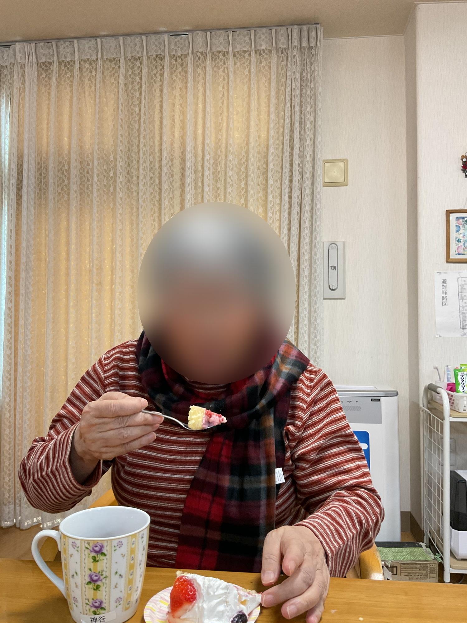 手作りケーキを召し上がり、