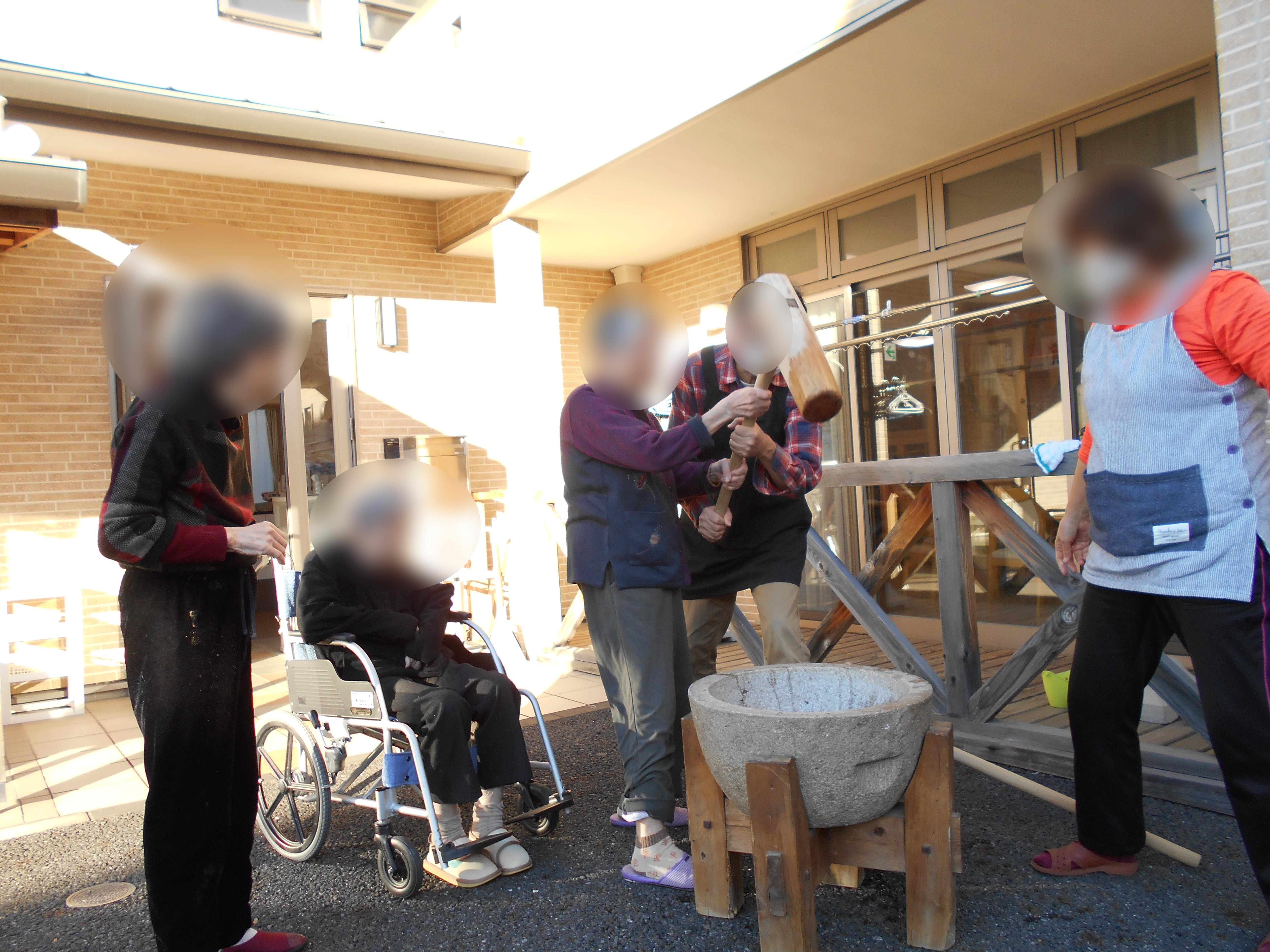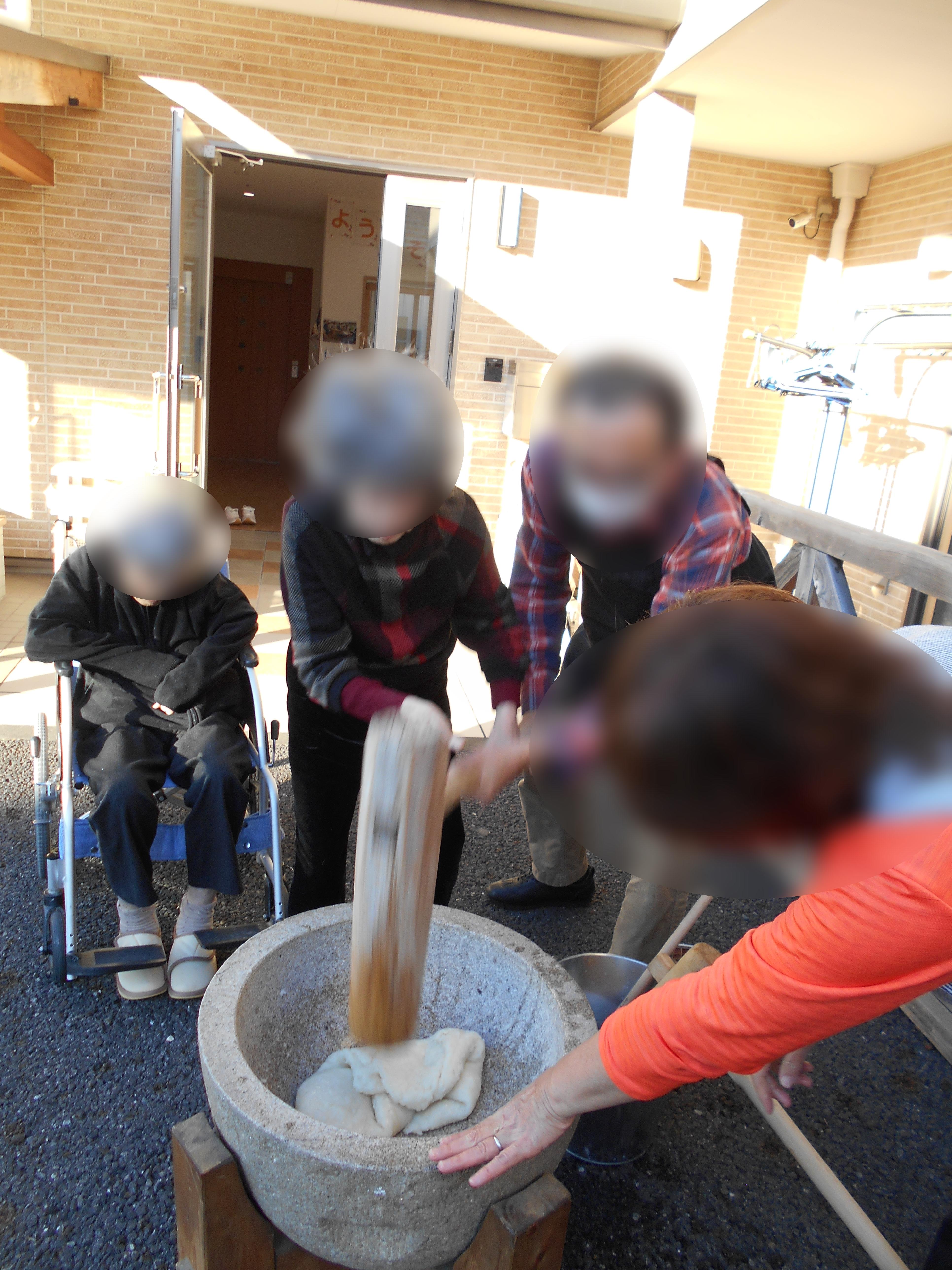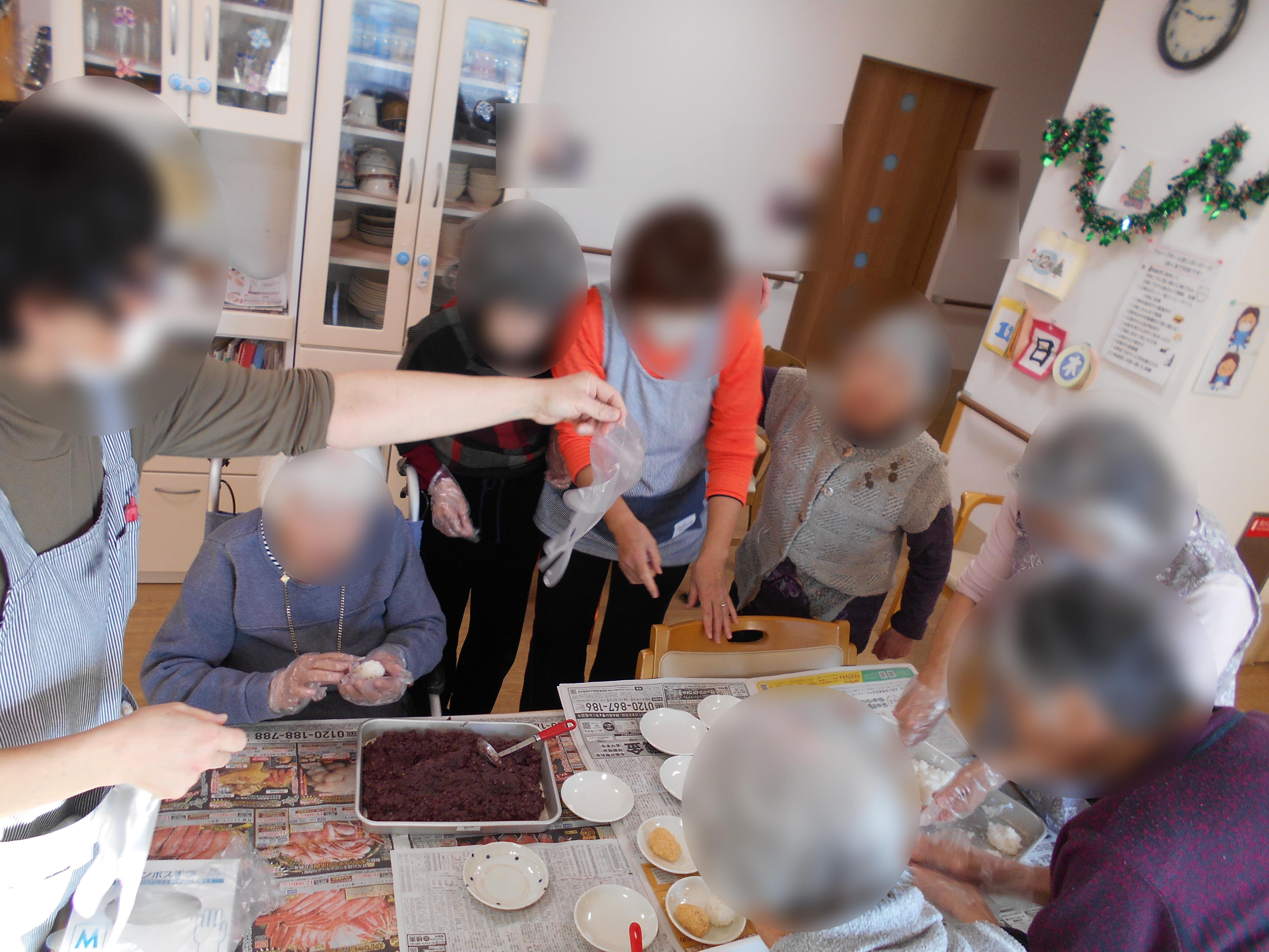 鏡餅作り、あん・きなこ・醤油味でちぎり餅を