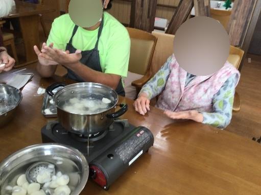 1Fではご利用者様の皆さんと一緒に団子を作っておしるこにしました