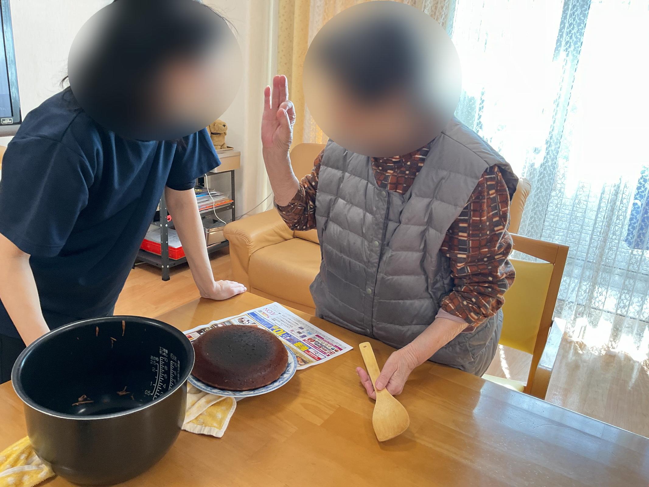 炊飯器でチョコケーキを作成し、