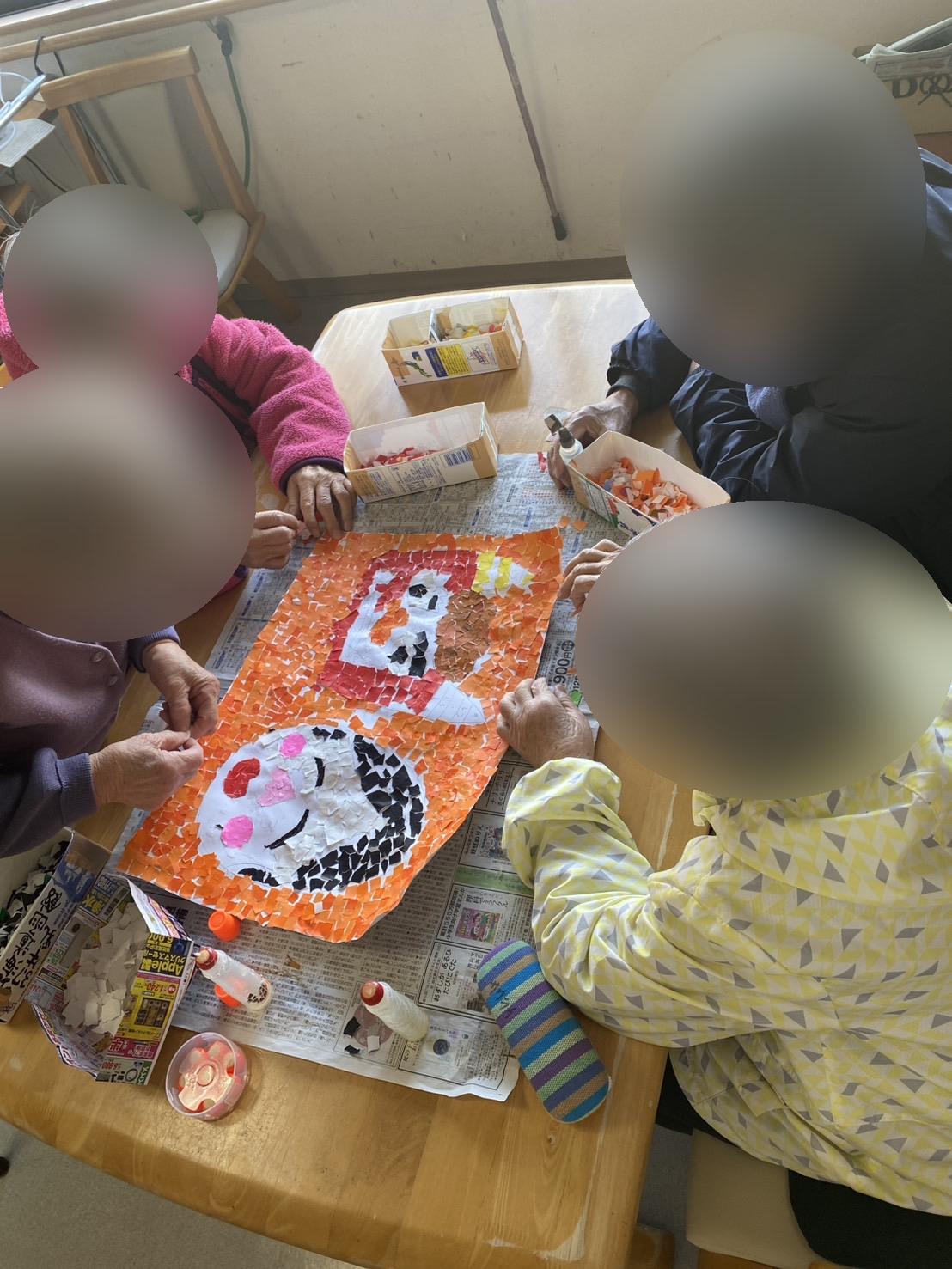 1階の入居者様は季節をテーマにした貼り絵を制作しています