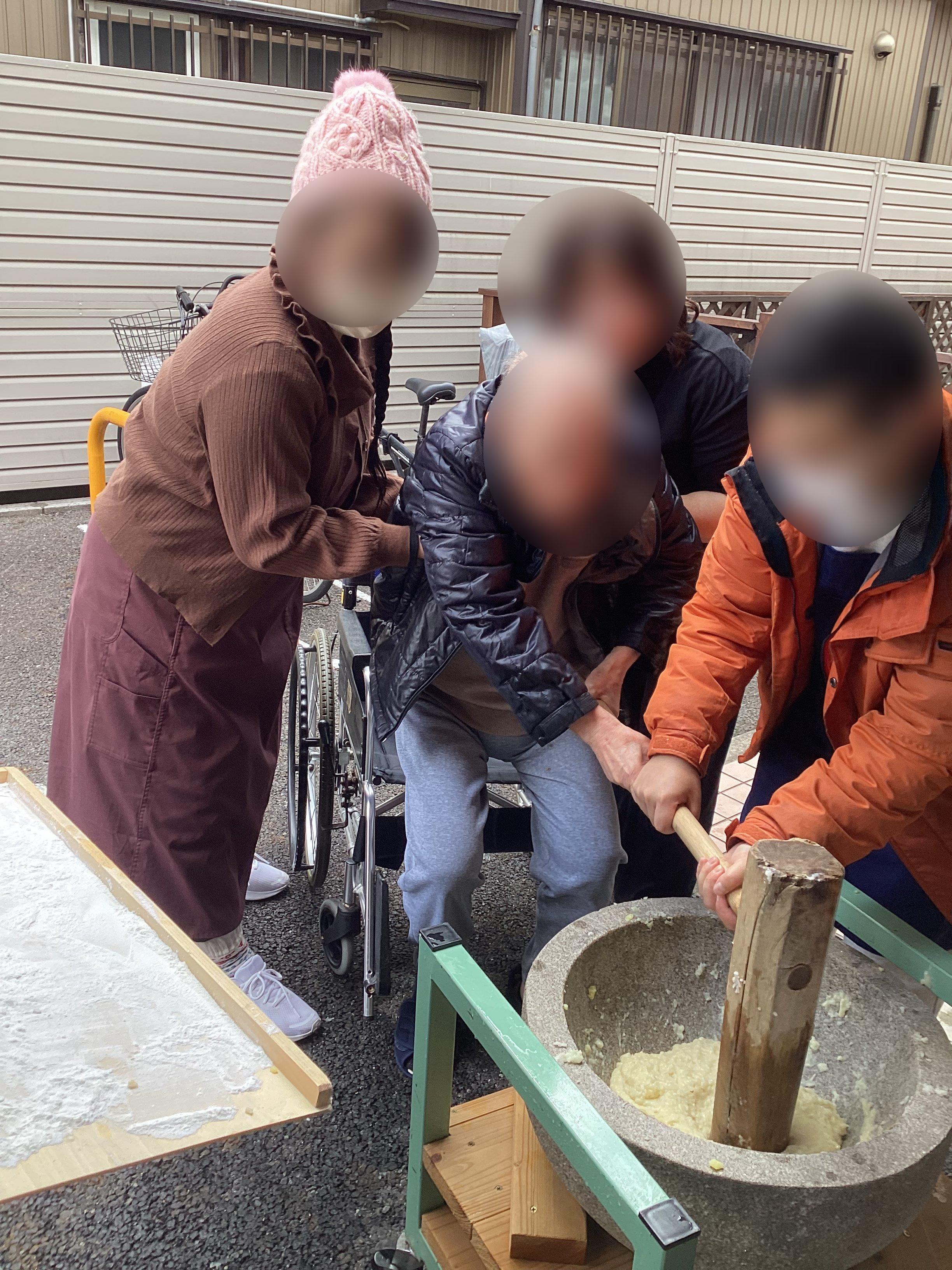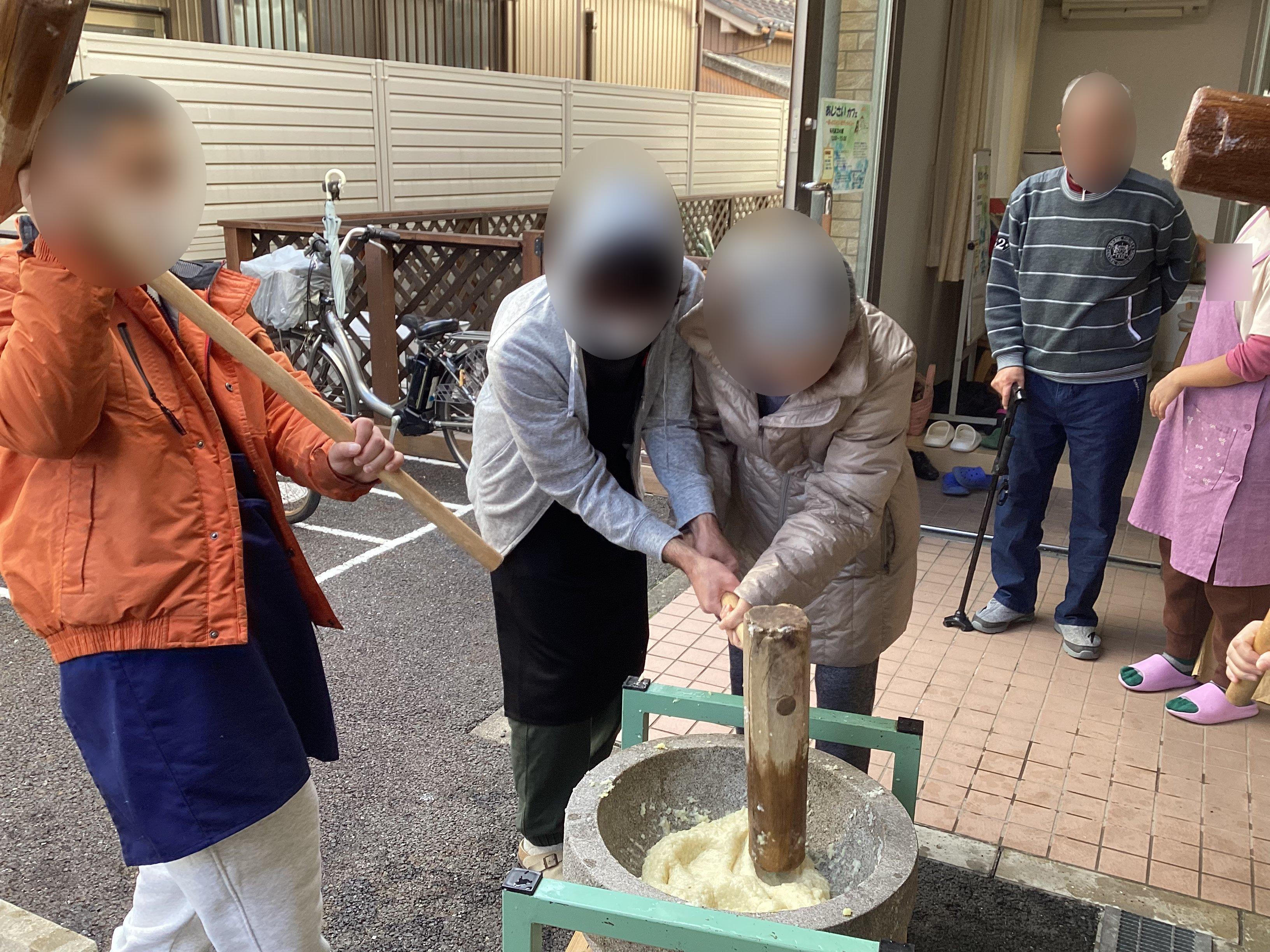 年末のお話ですが、石臼にて餅つきをさせて頂きました