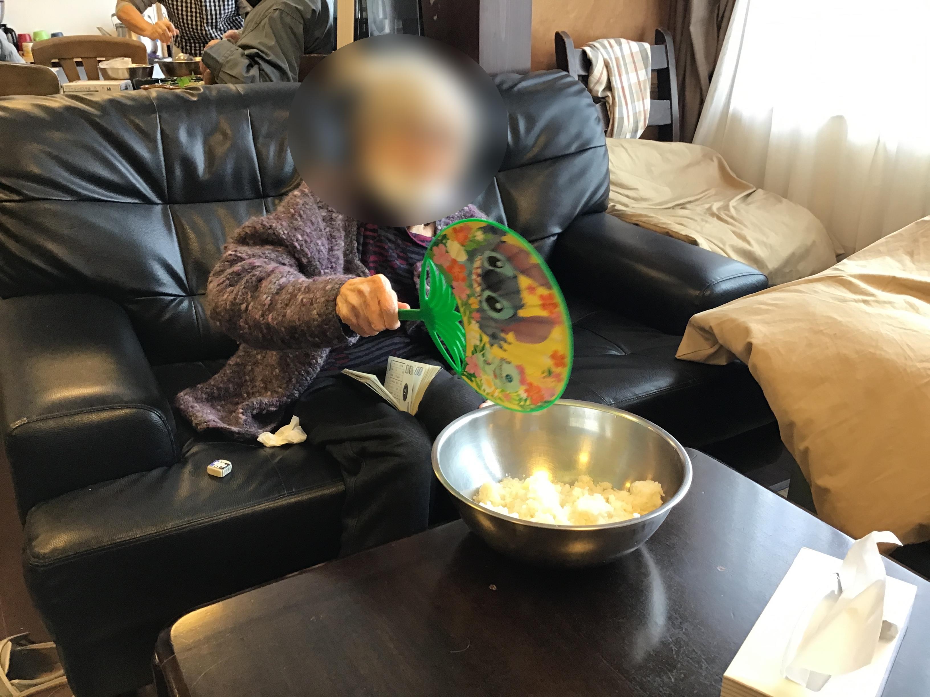 酢飯をうちわで仰いで、粗熱を取ります