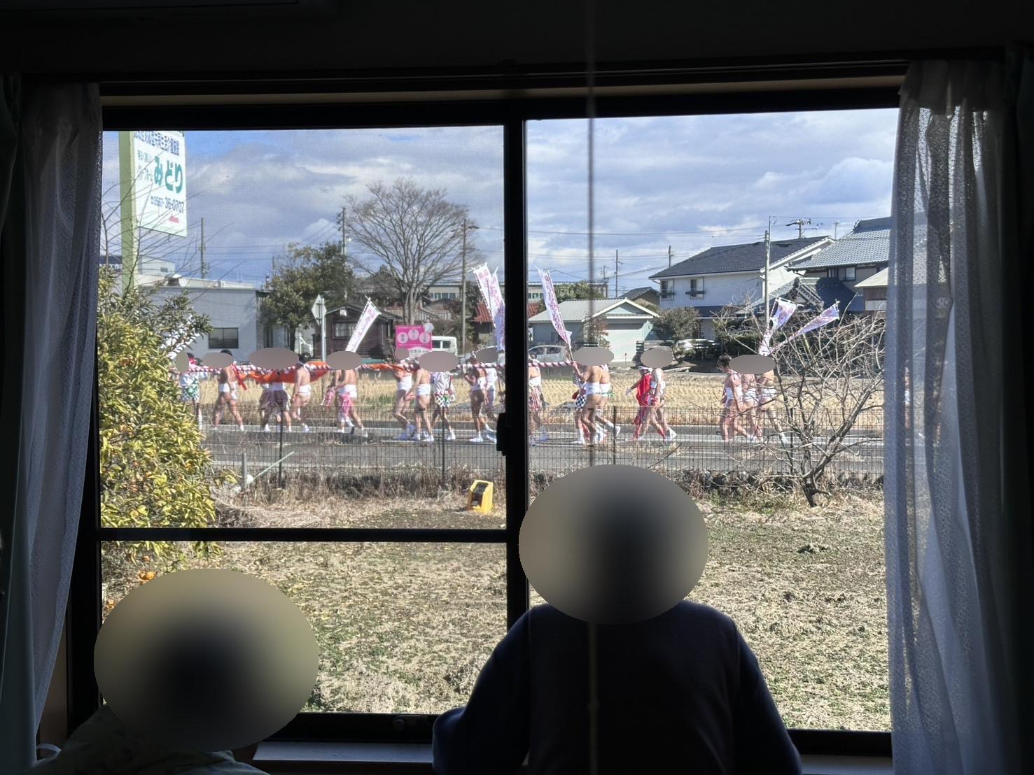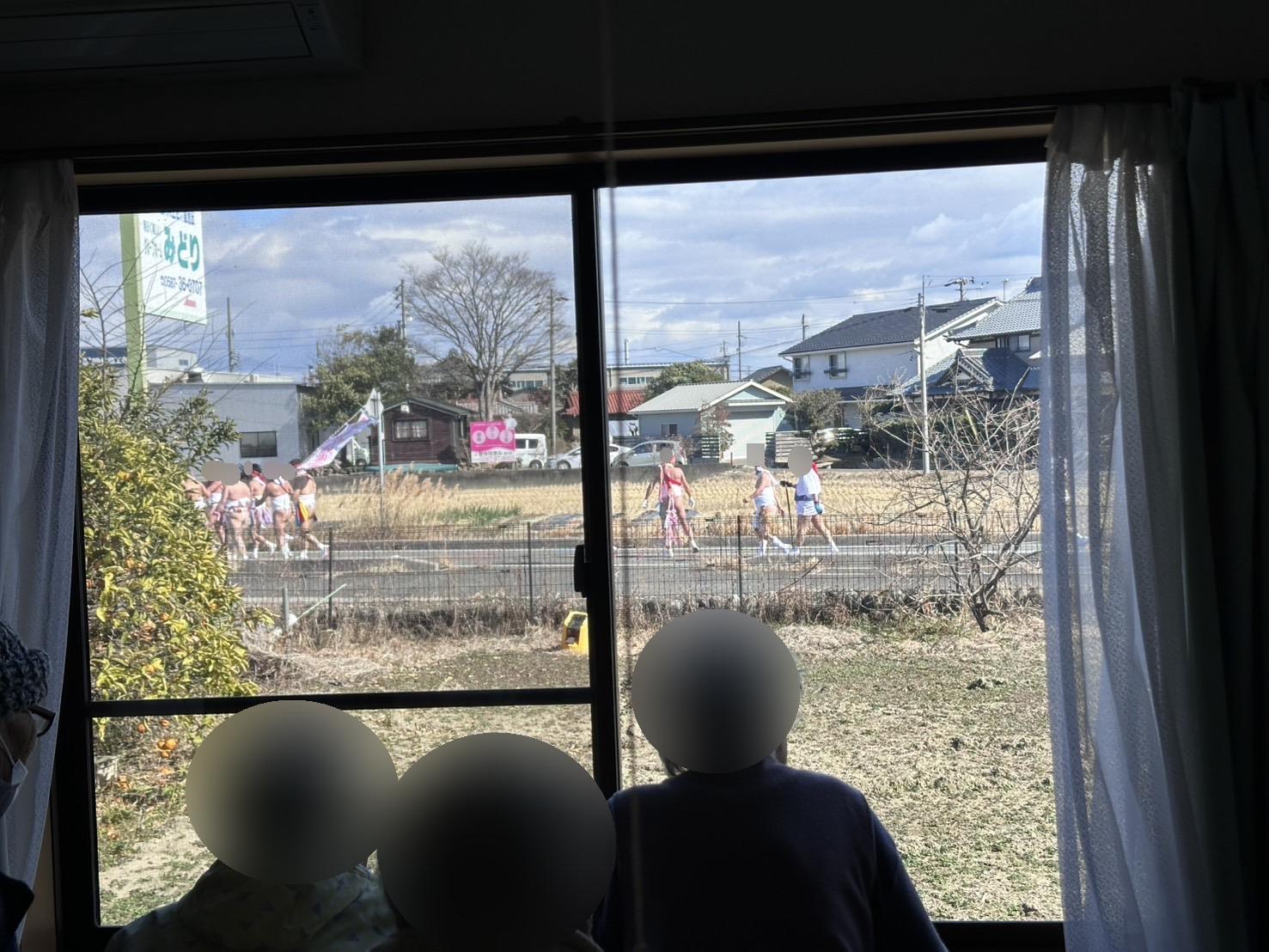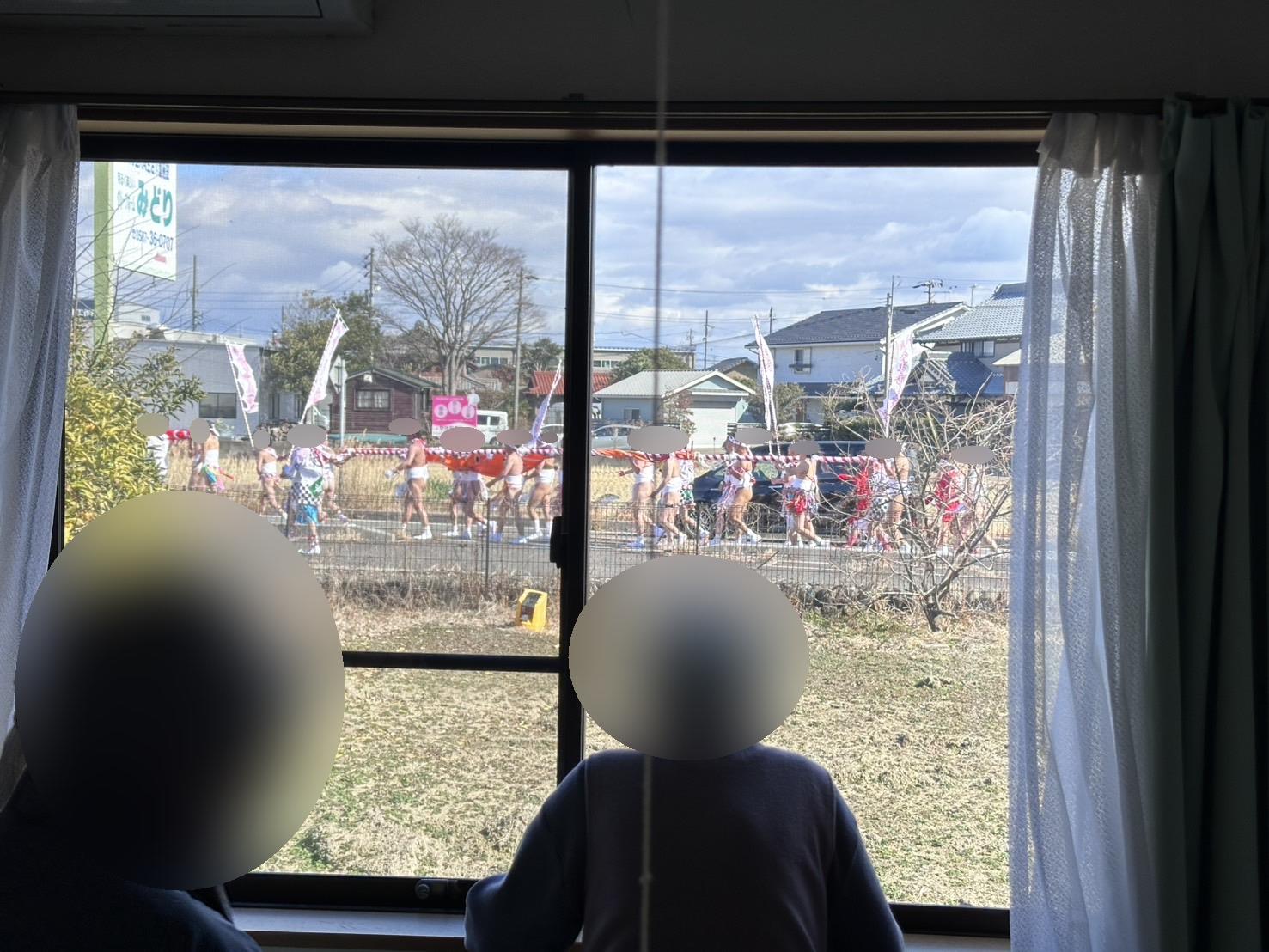 掛け声をかけながら通って行くのを窓から見て