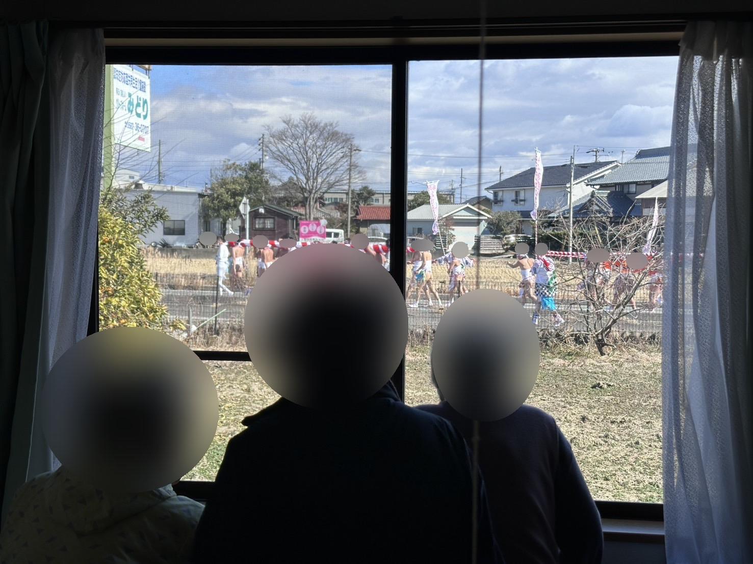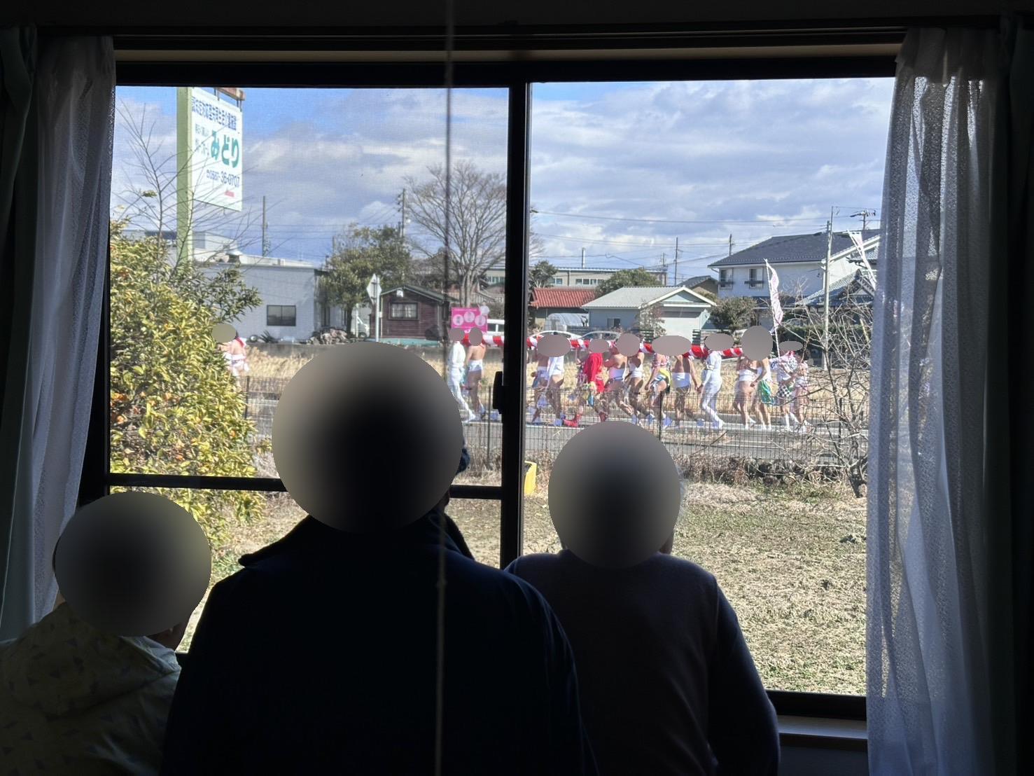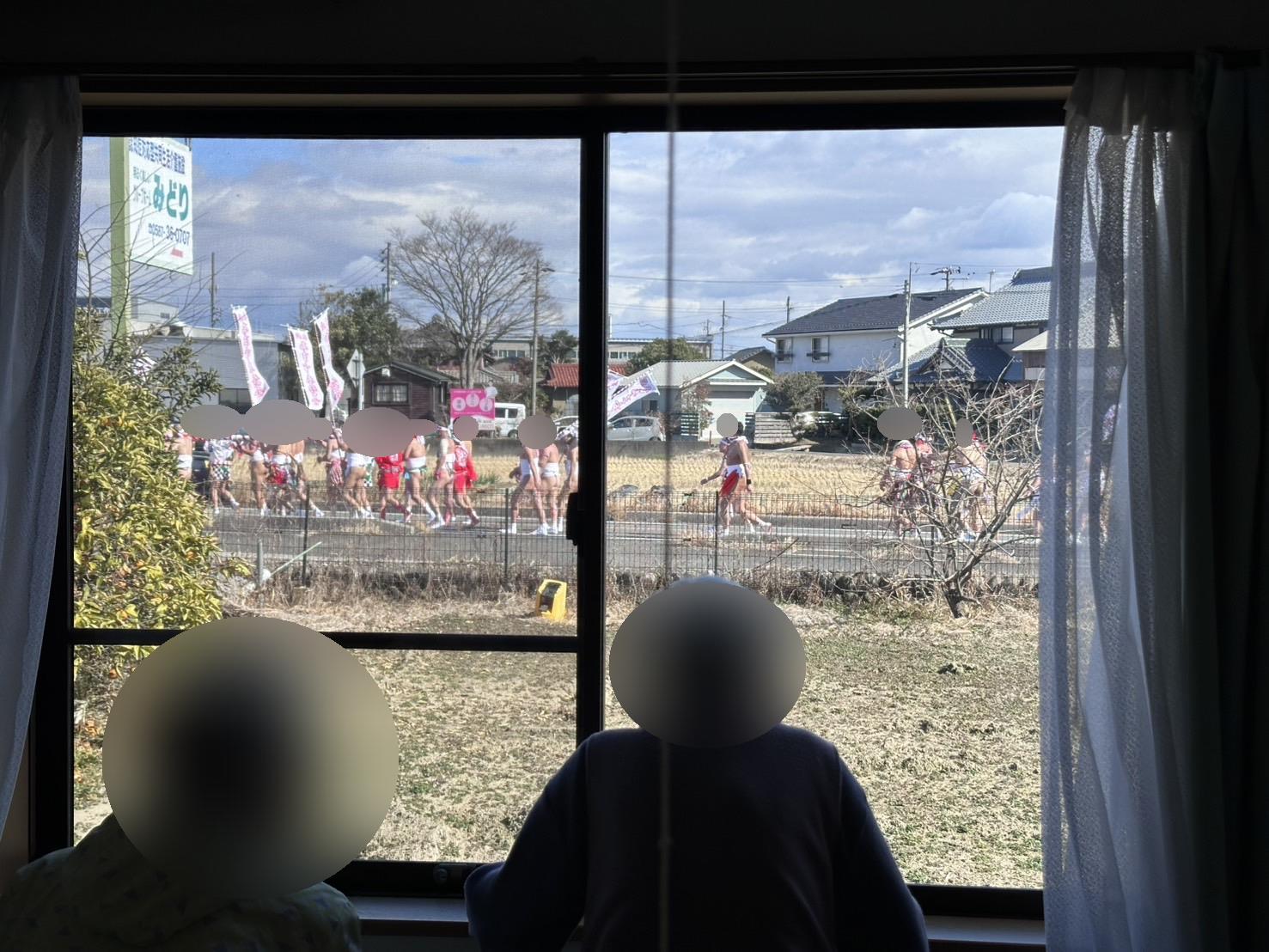 掛け声をかけながら通って行くのを窓から見て