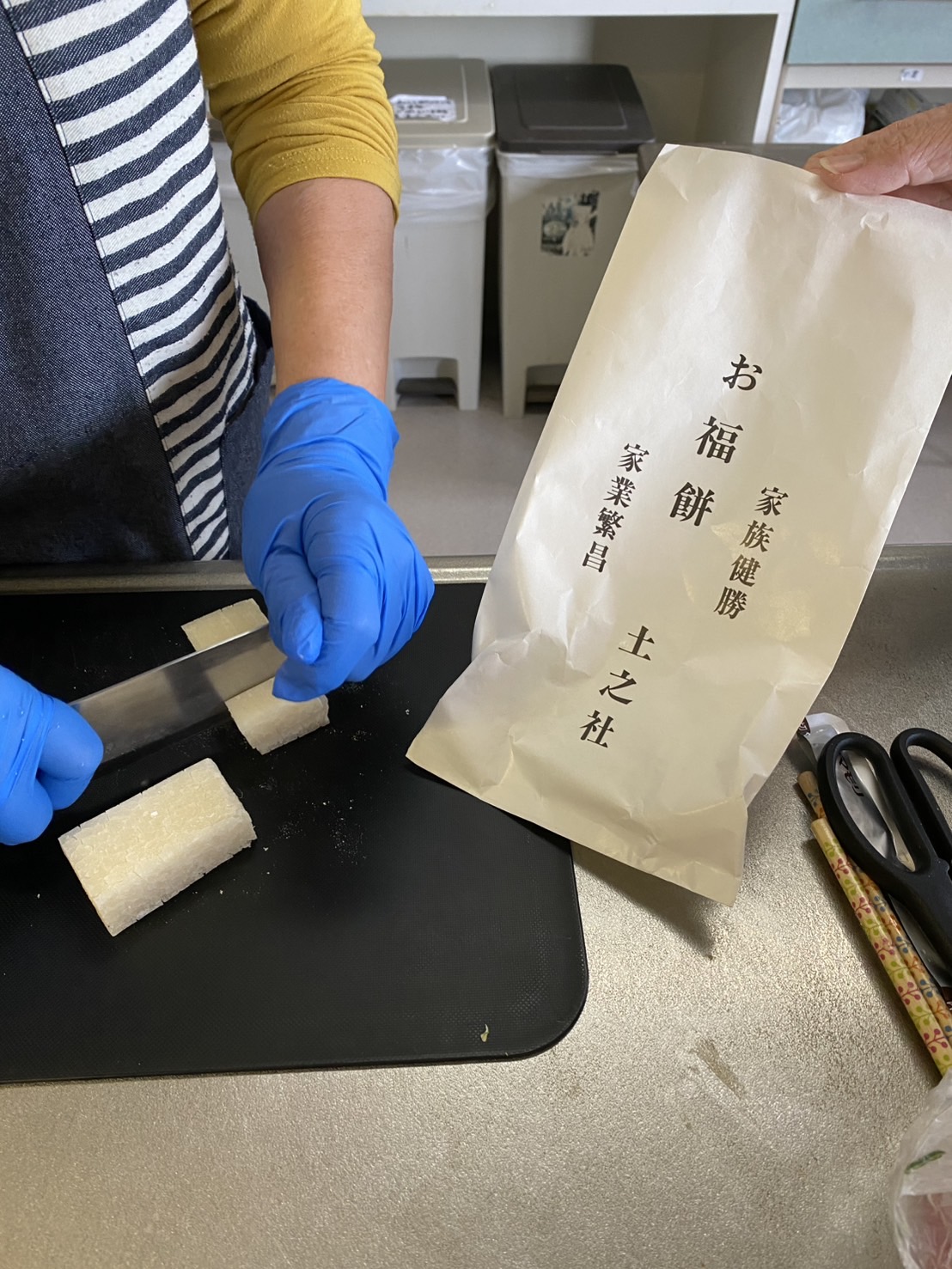 町内の大鏡餅をいただき、お昼の炊き込みご飯と一緒に炊いて、