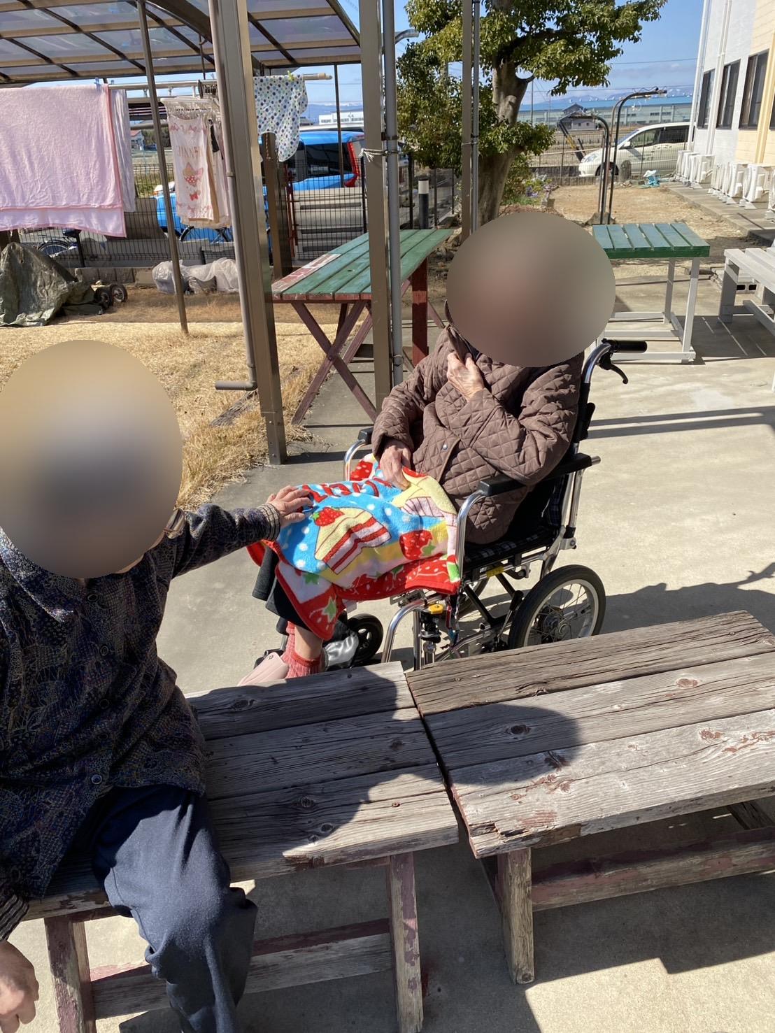 今日は、テラスで日向ぼっこをしました