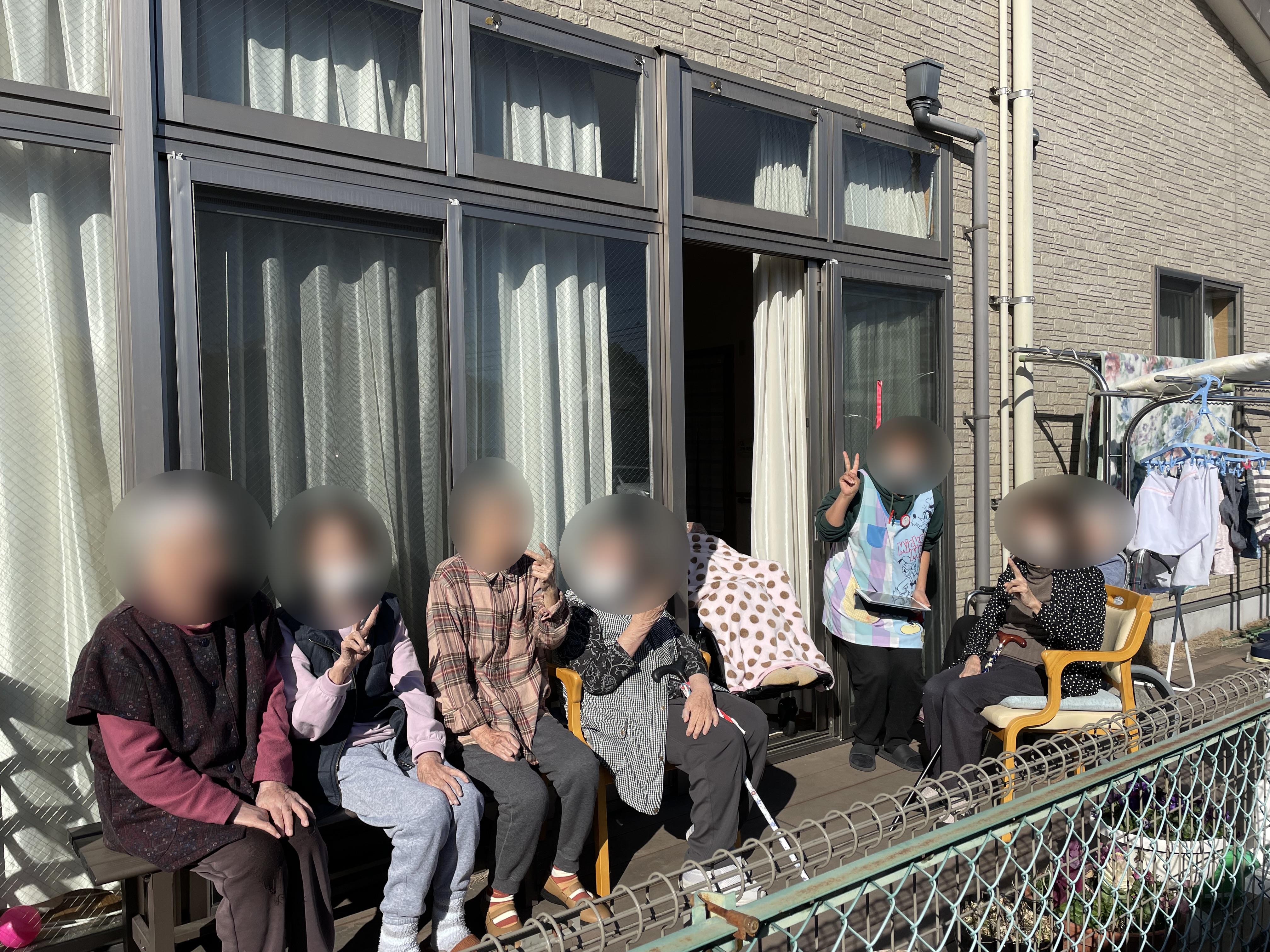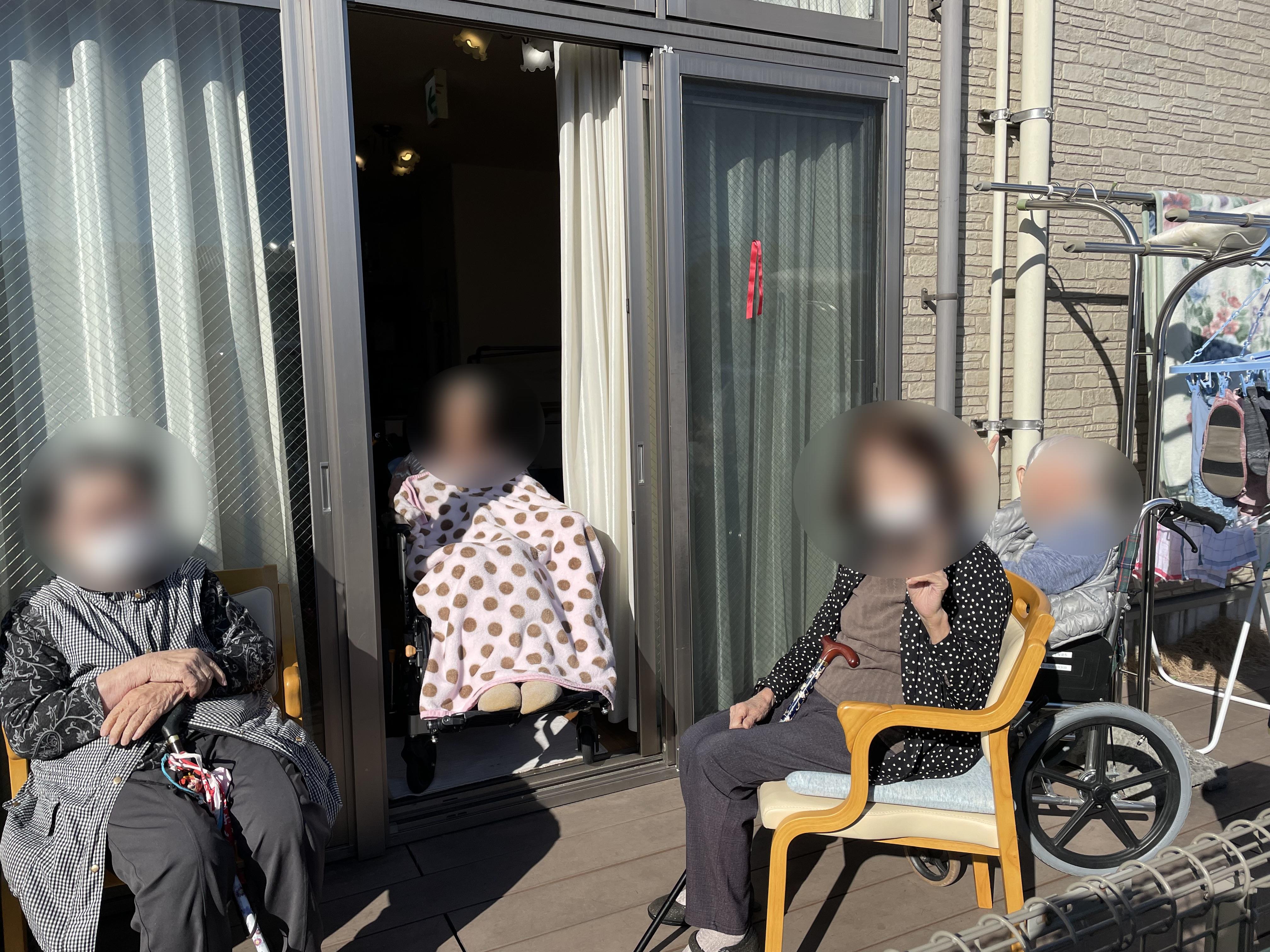 管理者出勤すると、とても暖かい日で、テラスで日向ぼっこをされておりました