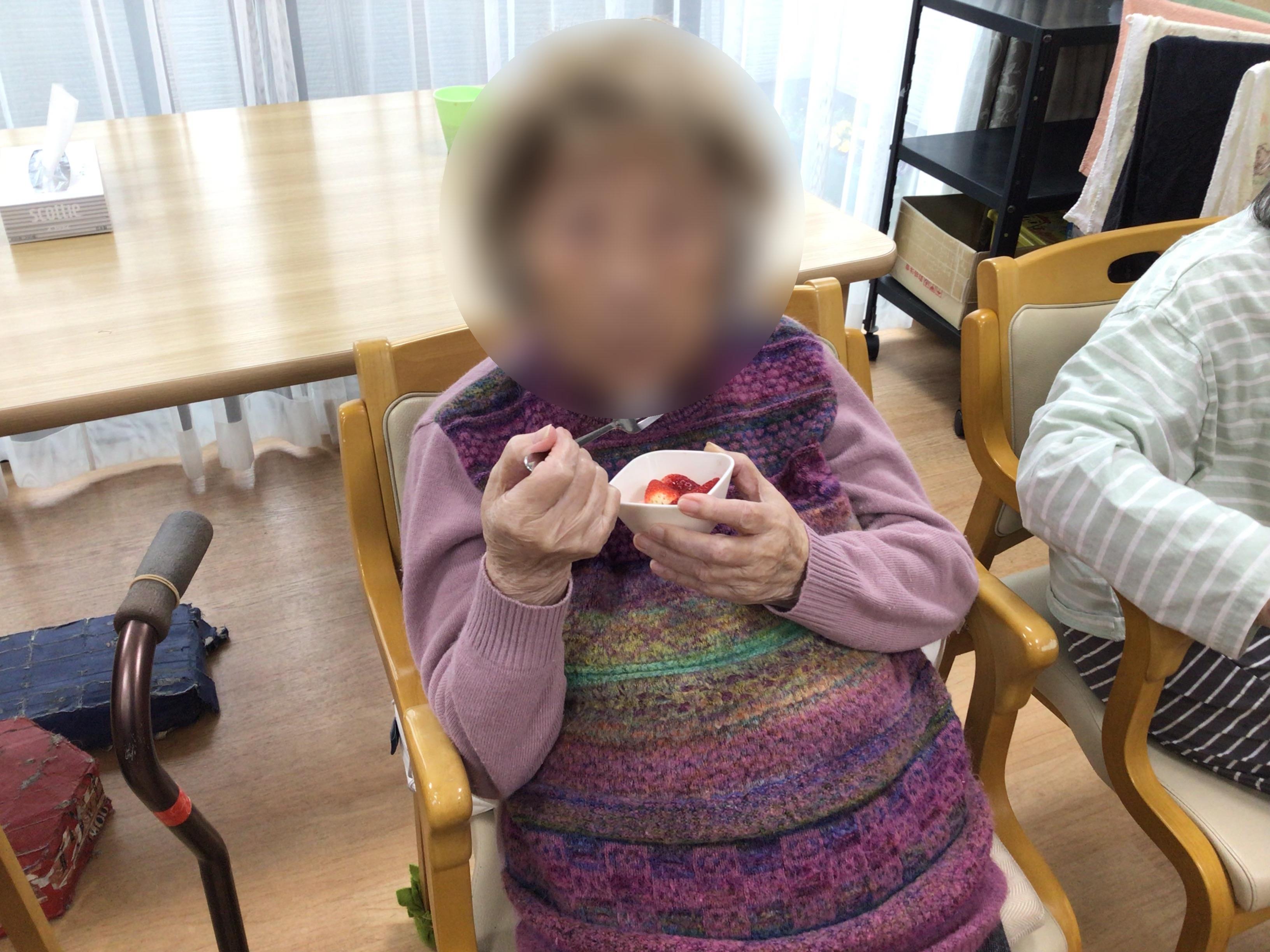 グループホームでは、イチゴ狩りゲームを行い、皆様に楽しんでいただきました