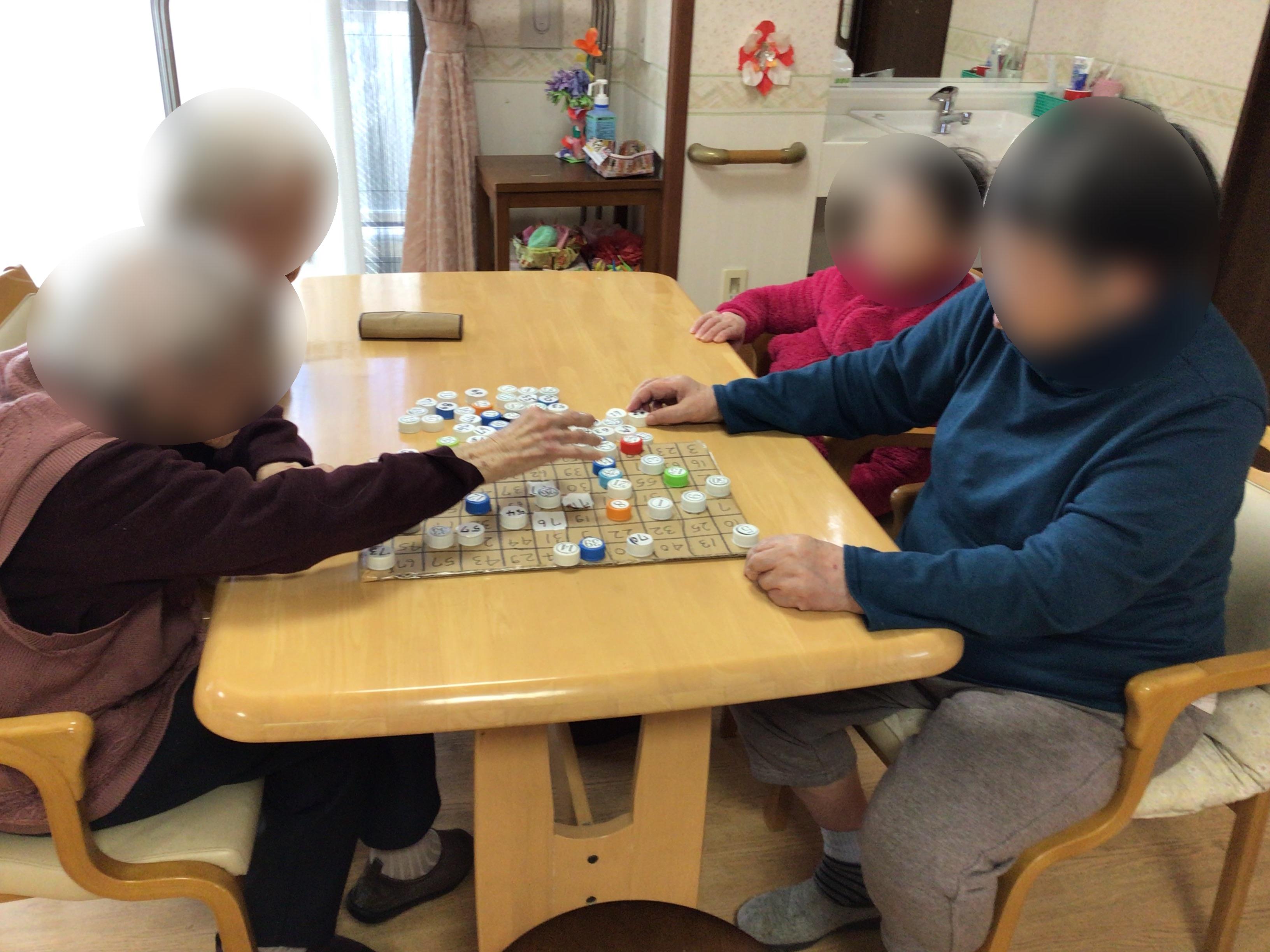 段ボールで作ったボードにおいていくゲームです