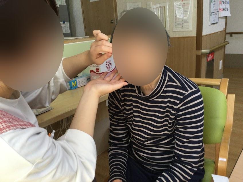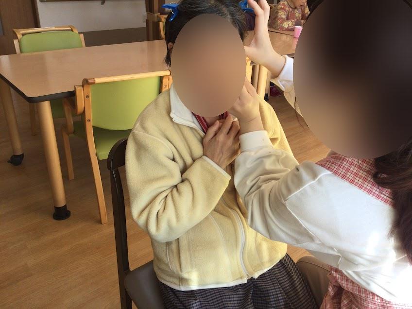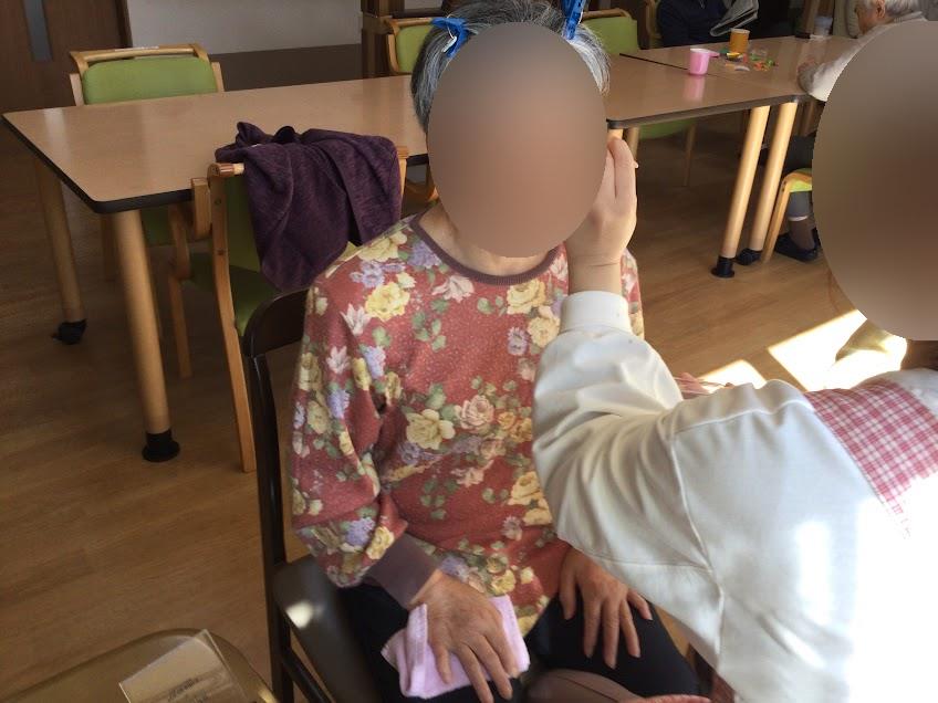 レクリエーションの企画で女性のご利用者様にお化粧をしていただきました