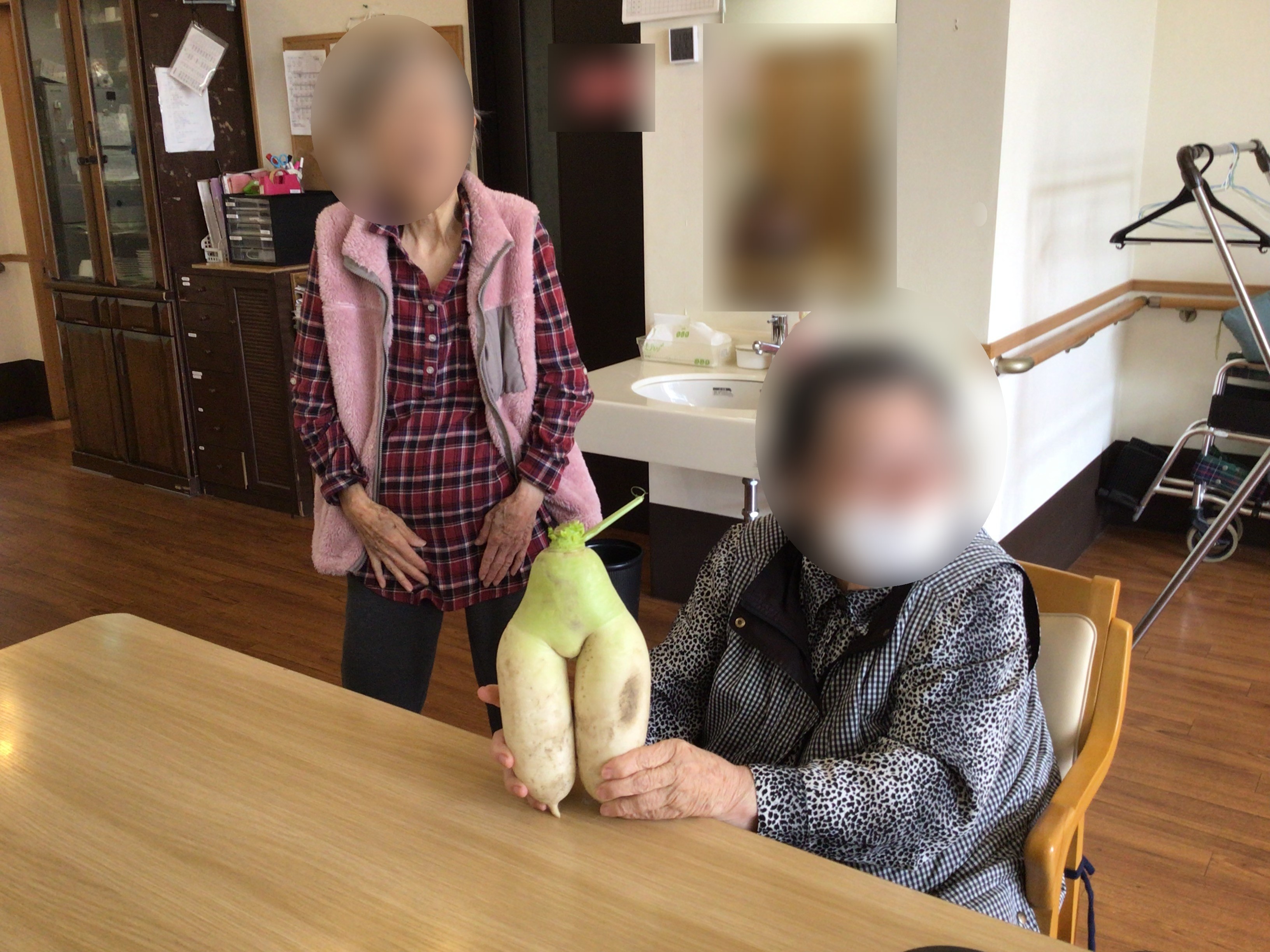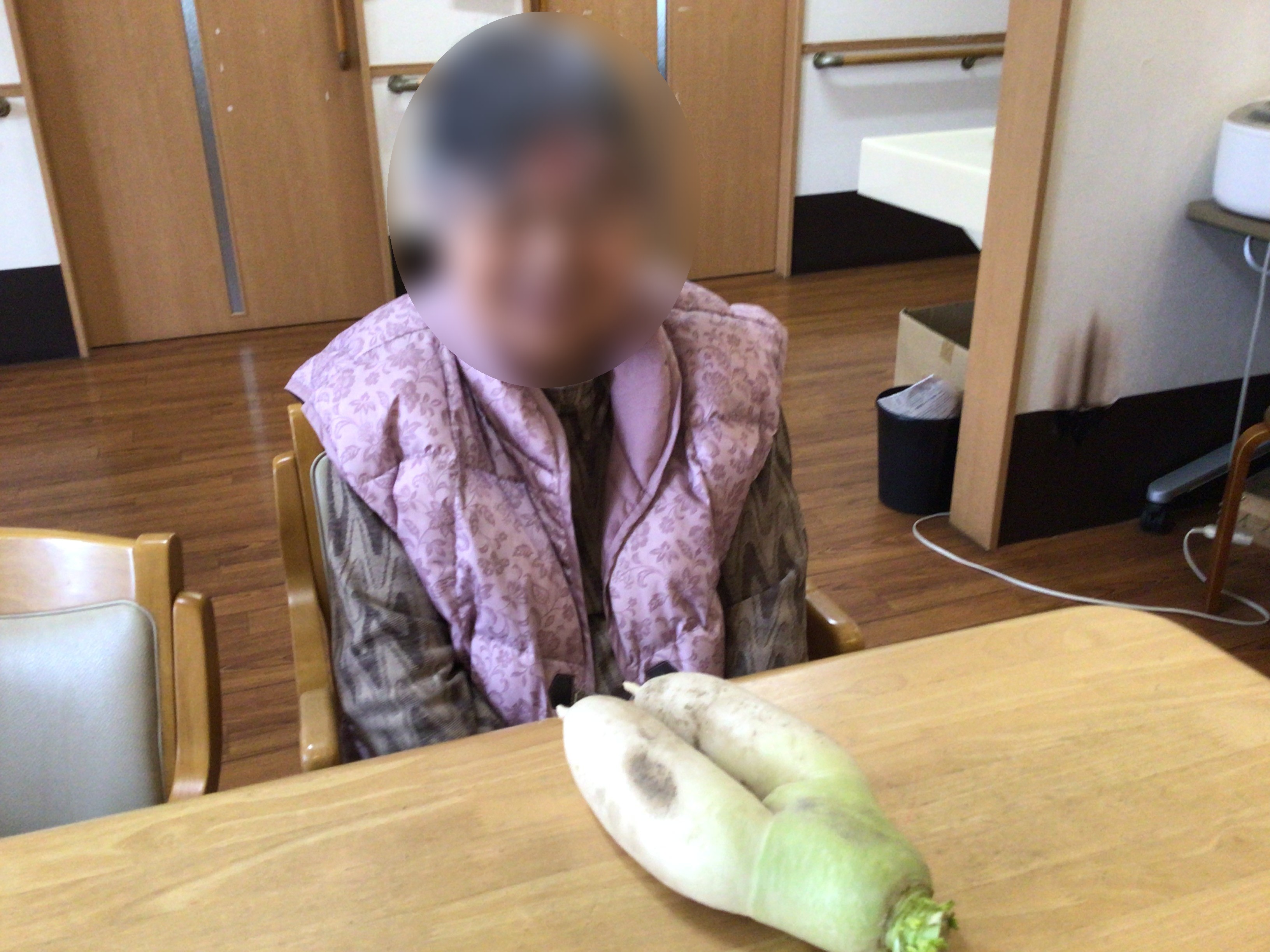 小規模のご家族様から、「面白い大根が出来たので、笑いにネタにして