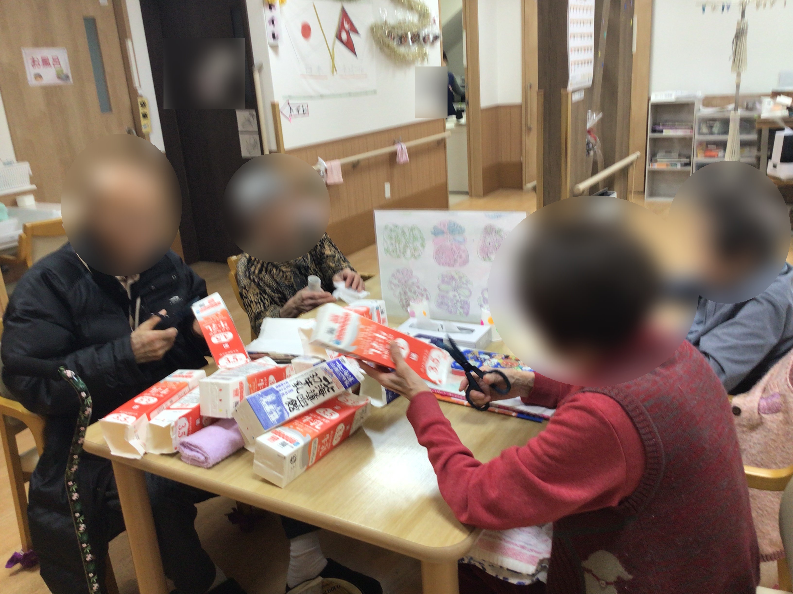 本日は、その準備のため、ご利用者様方が牛乳パックのカット