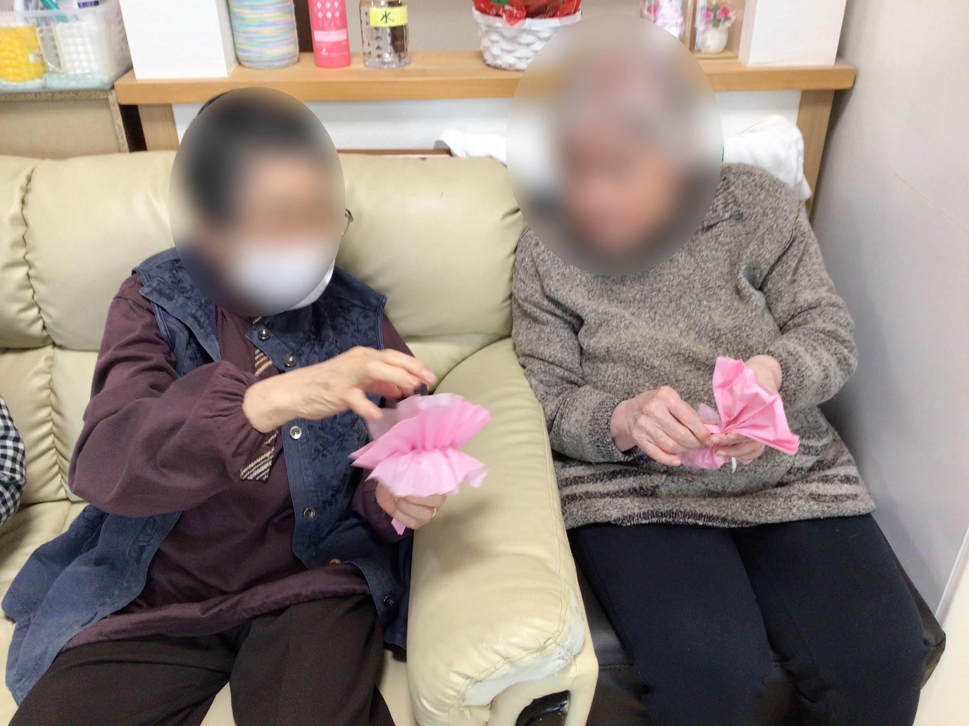 皆様でフラワーペーパーを使い創作レクを行いました