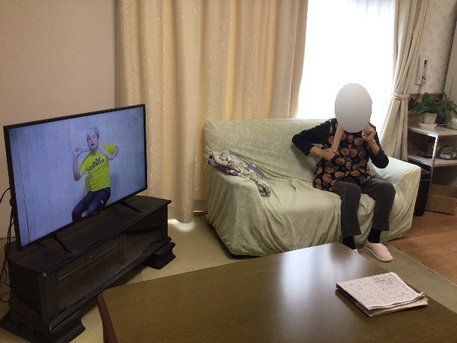 2FフロアではYouTubeを見ながらタオル体操を行いました
