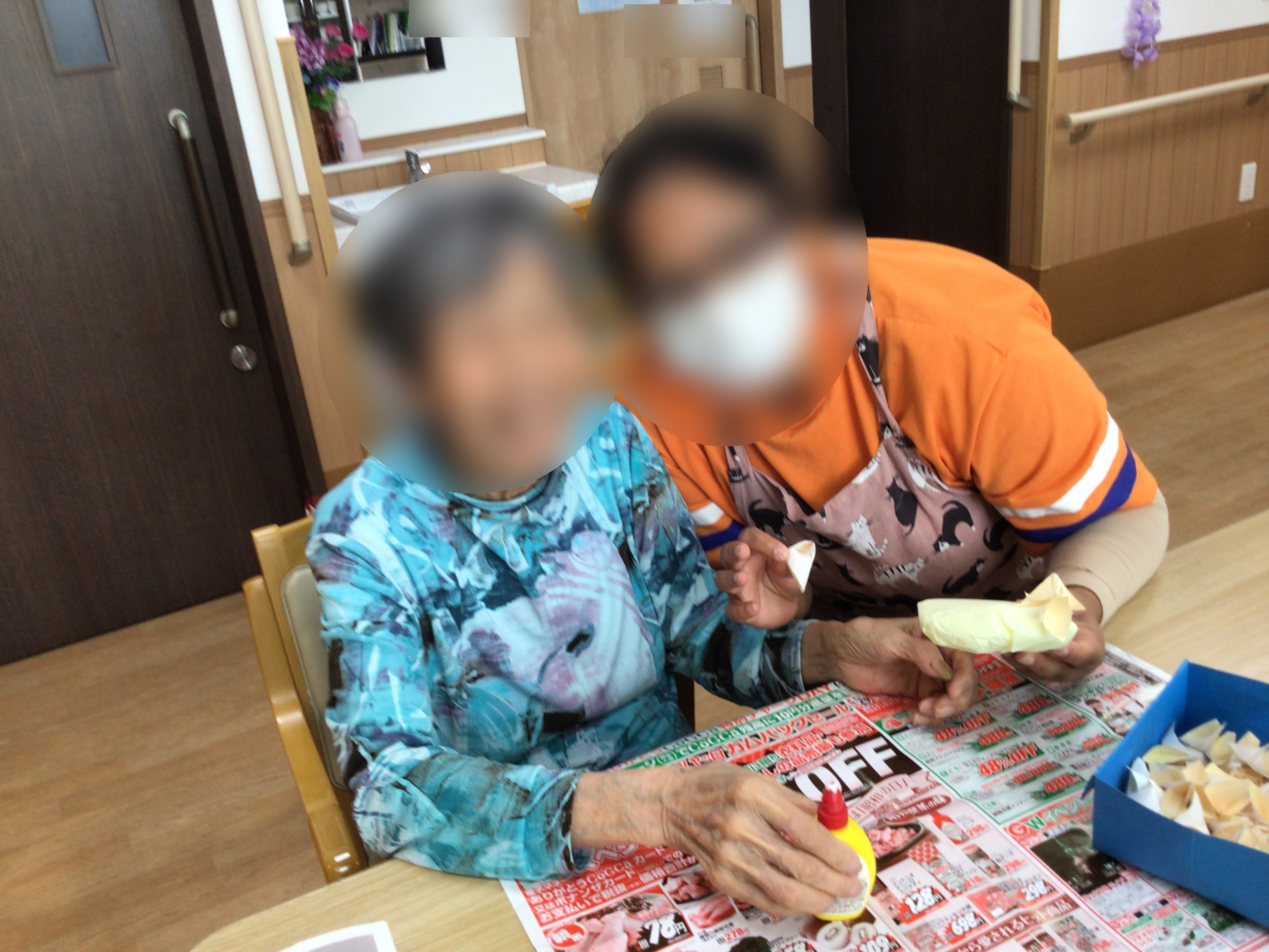 職員も一緒に行い、色とりどりのあじさいが完成しました