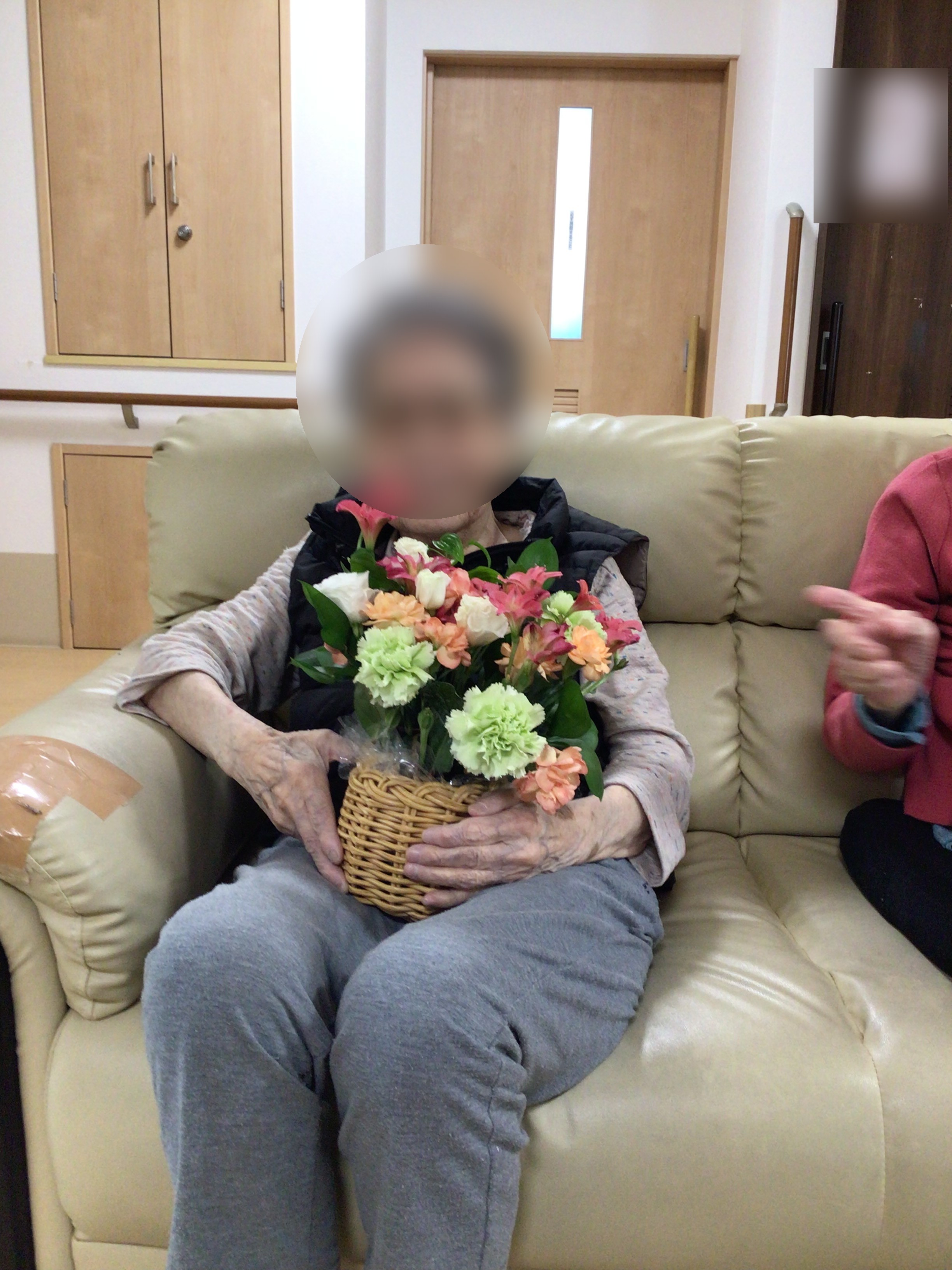 ご家族様よりお花も届き、笑顔溢れるお誕生日会になりました