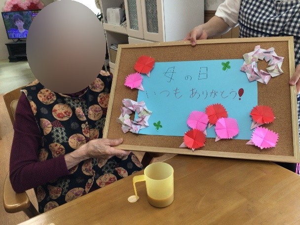 2Fの母の日では手作りボードと一緒に記念撮影をしました