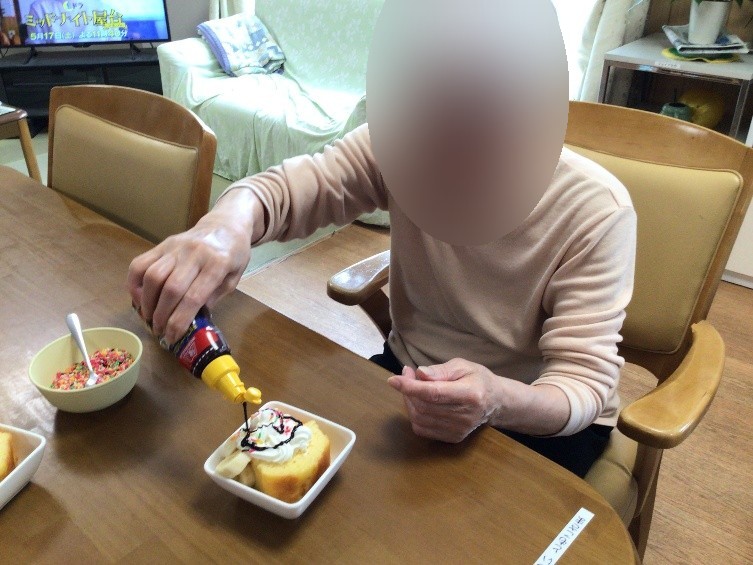 ご自分でクリームやチョコをトッピングして召し上がられました