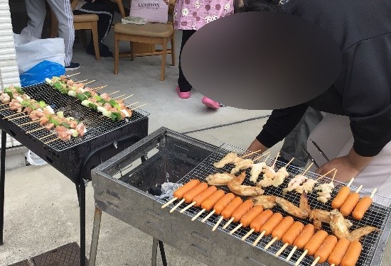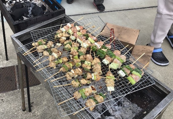 当日のメニューは、豆腐、手羽先、ウインナー、職員が串に刺した焼き鳥