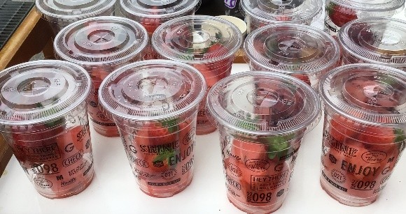 野菜、おにぎり、デザートにスイカとイチゴと盛りだくさんでした