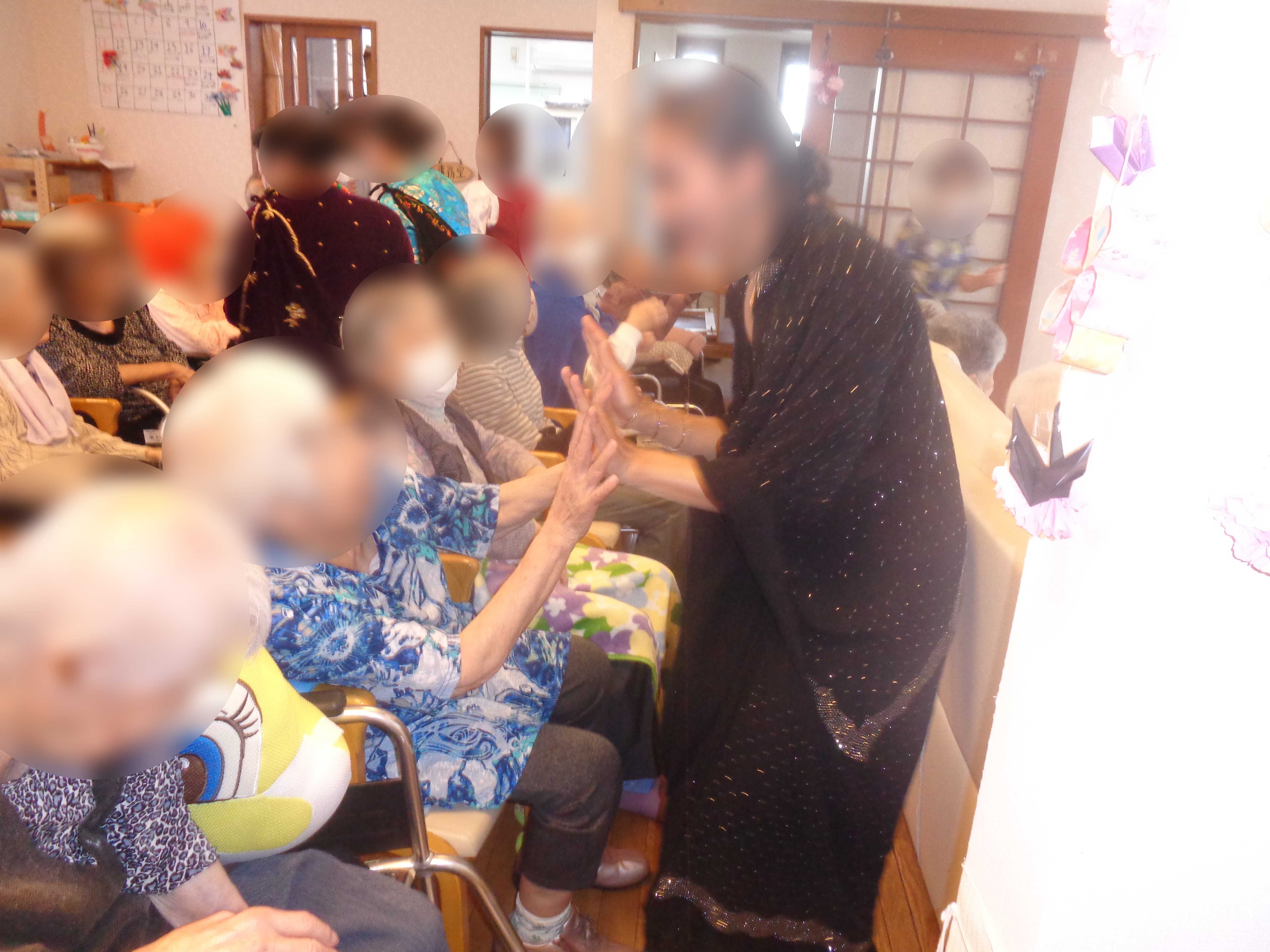 次の音楽が流れると特定技能の職員がご利用者様ひとりひとりに回りながら、