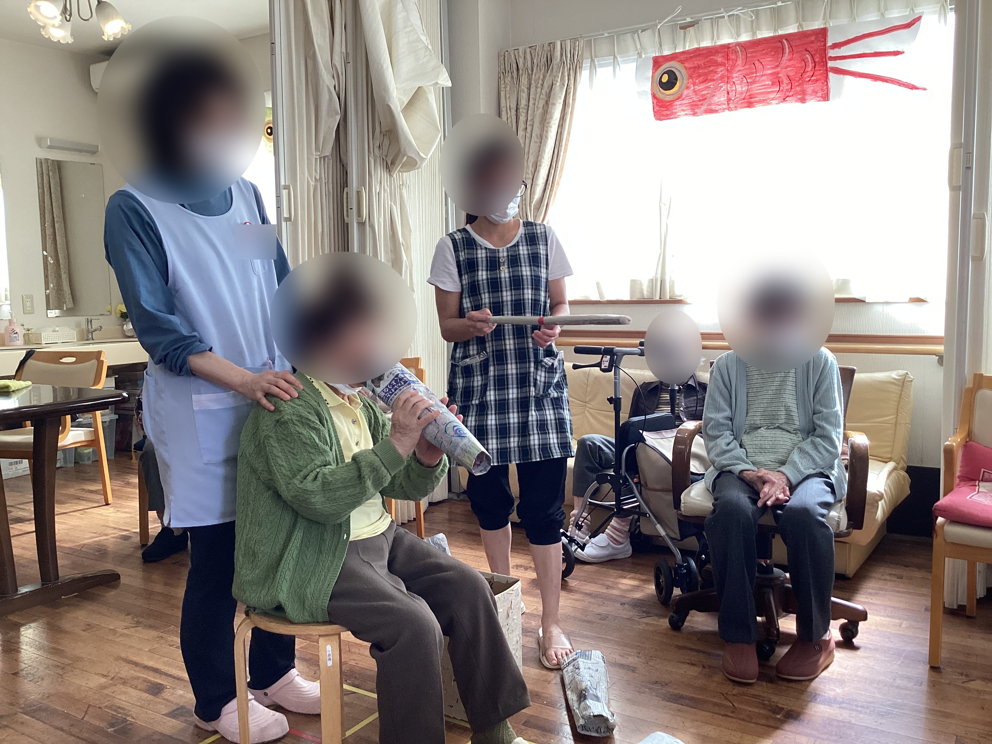 端午の節句には、鯉のぼりを皆様で制作して頂きました