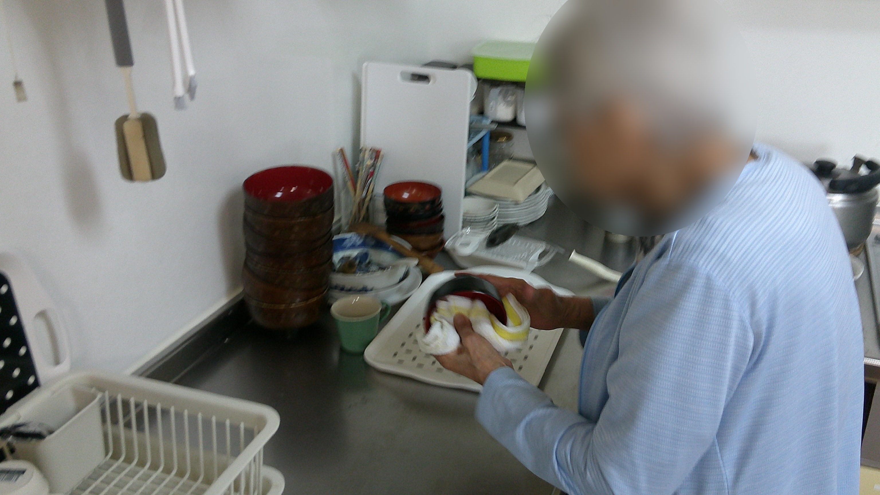 皆様交代で食器洗いと食器拭きに