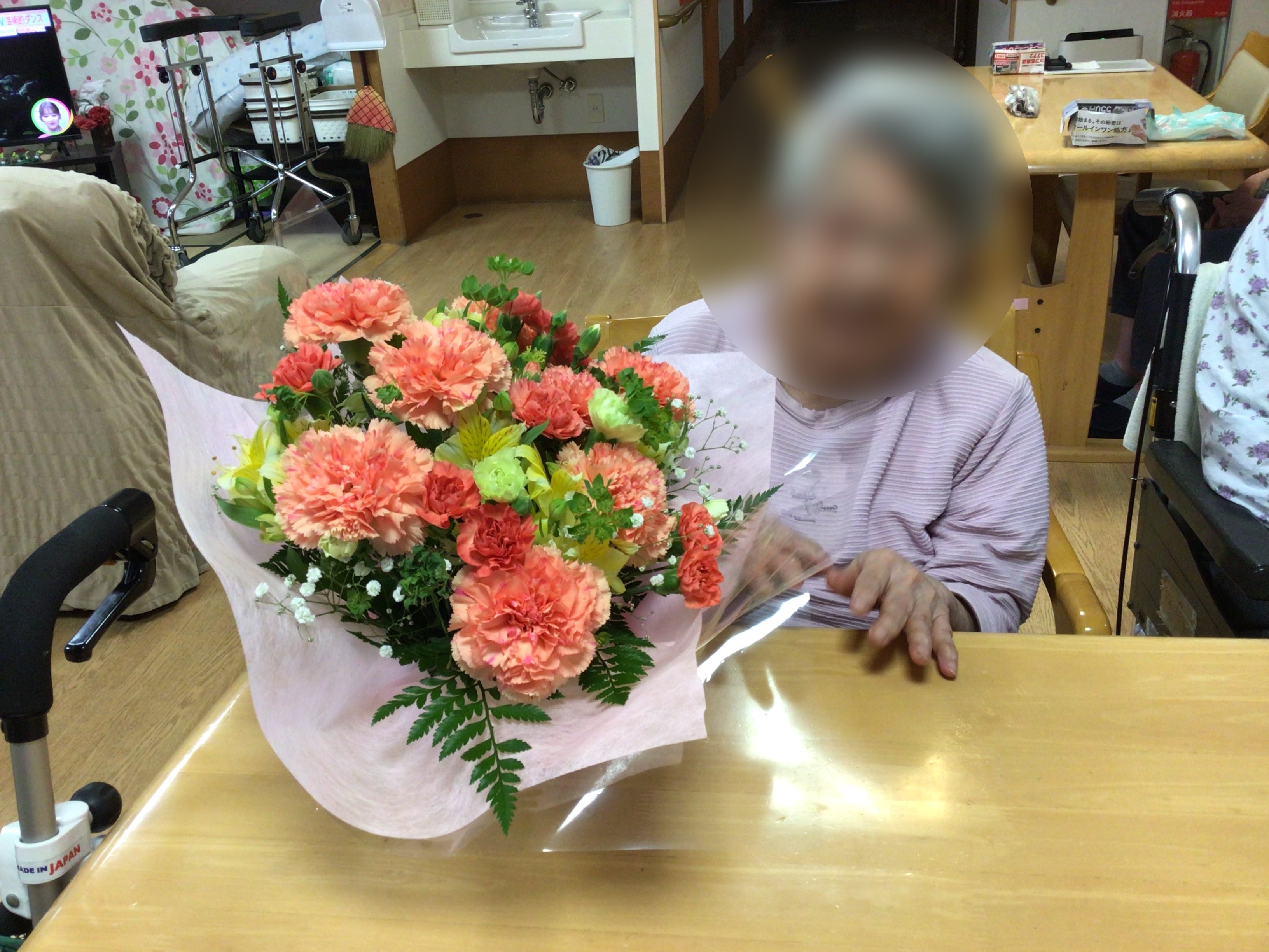 家族様からきれいなお花も頂き、とても喜ばれていました