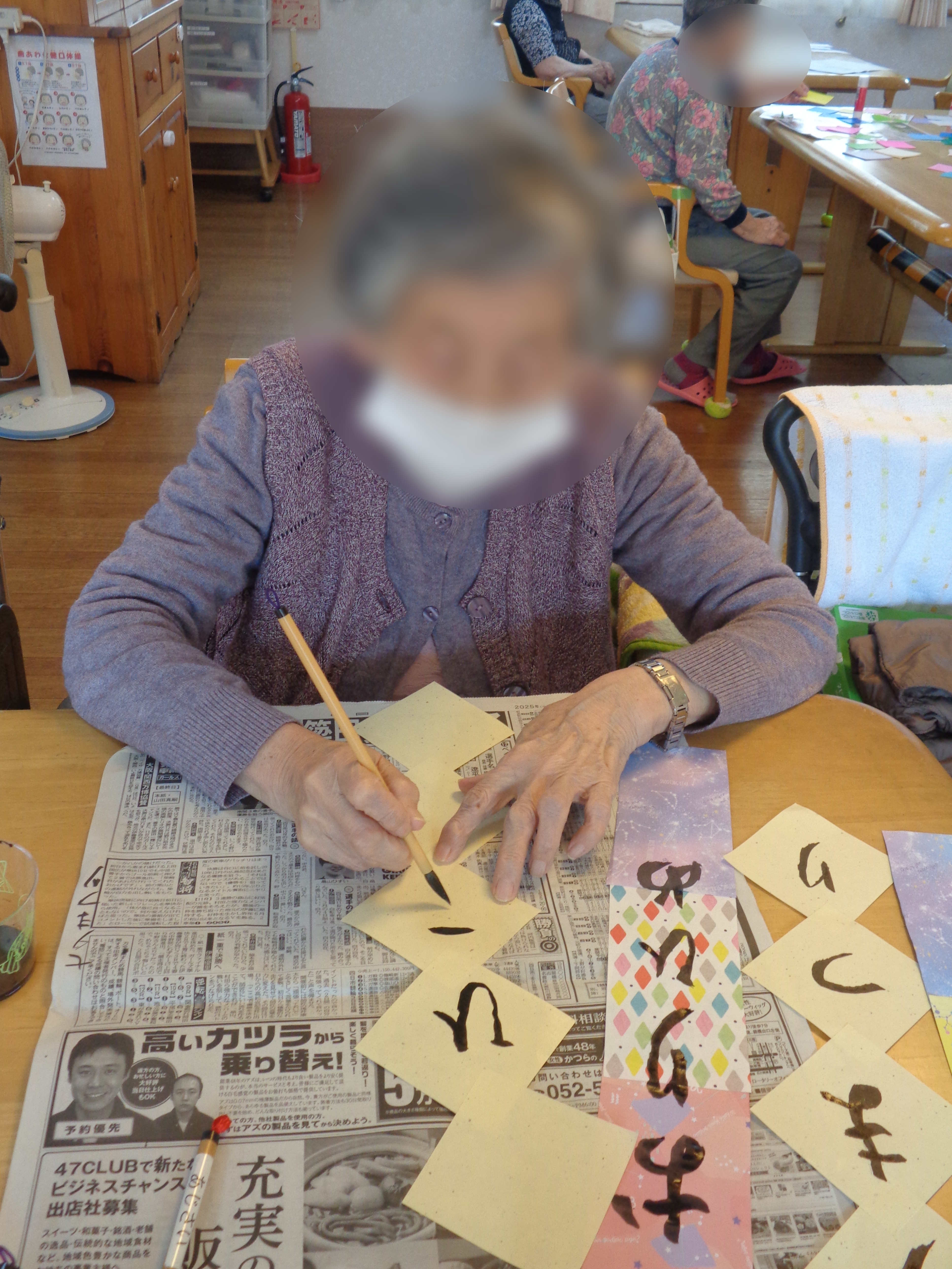 今年は字を書くのが綺麗なご利用者様に協力して頂き、筆ペンで『七夕まつり』など