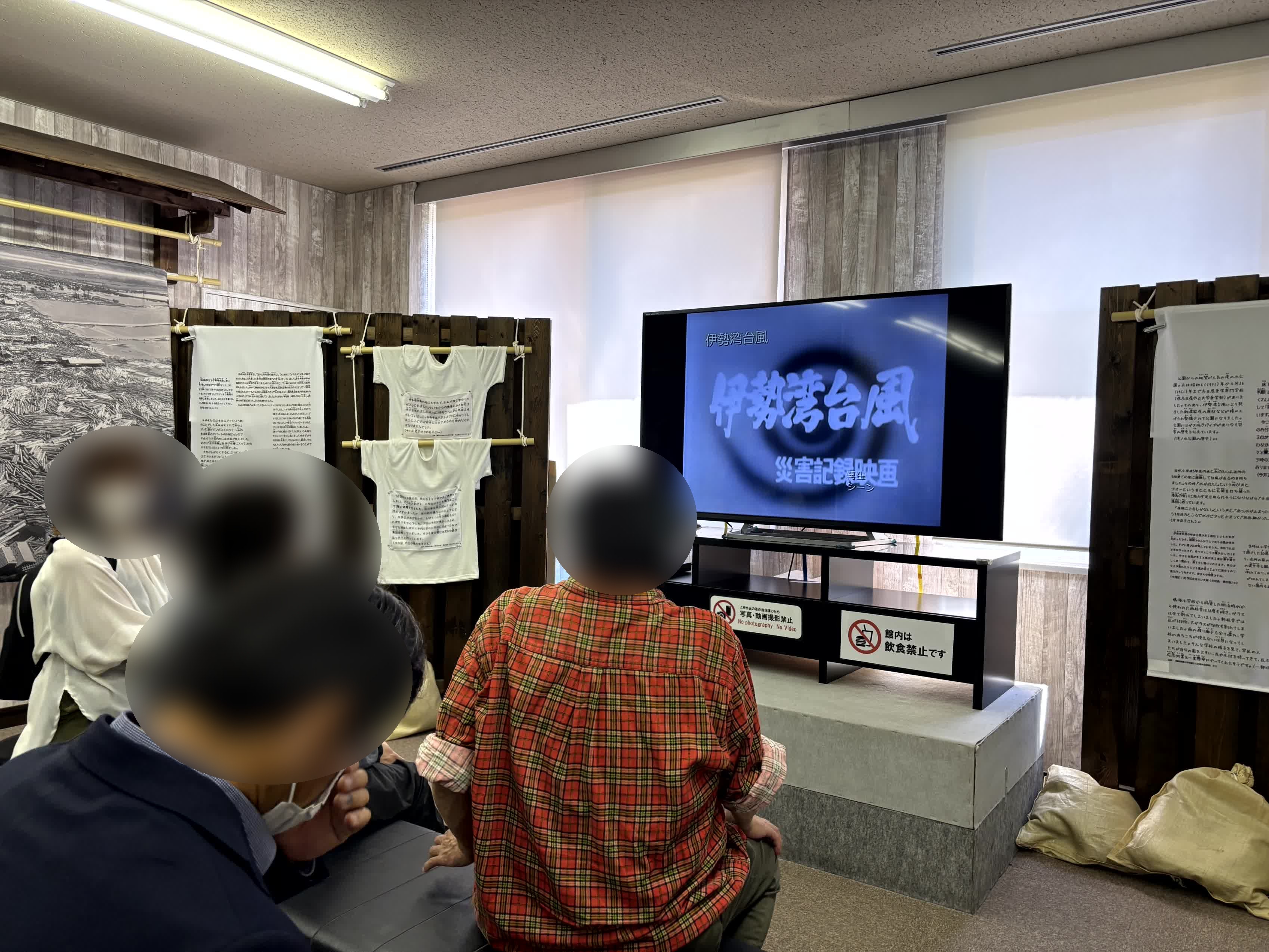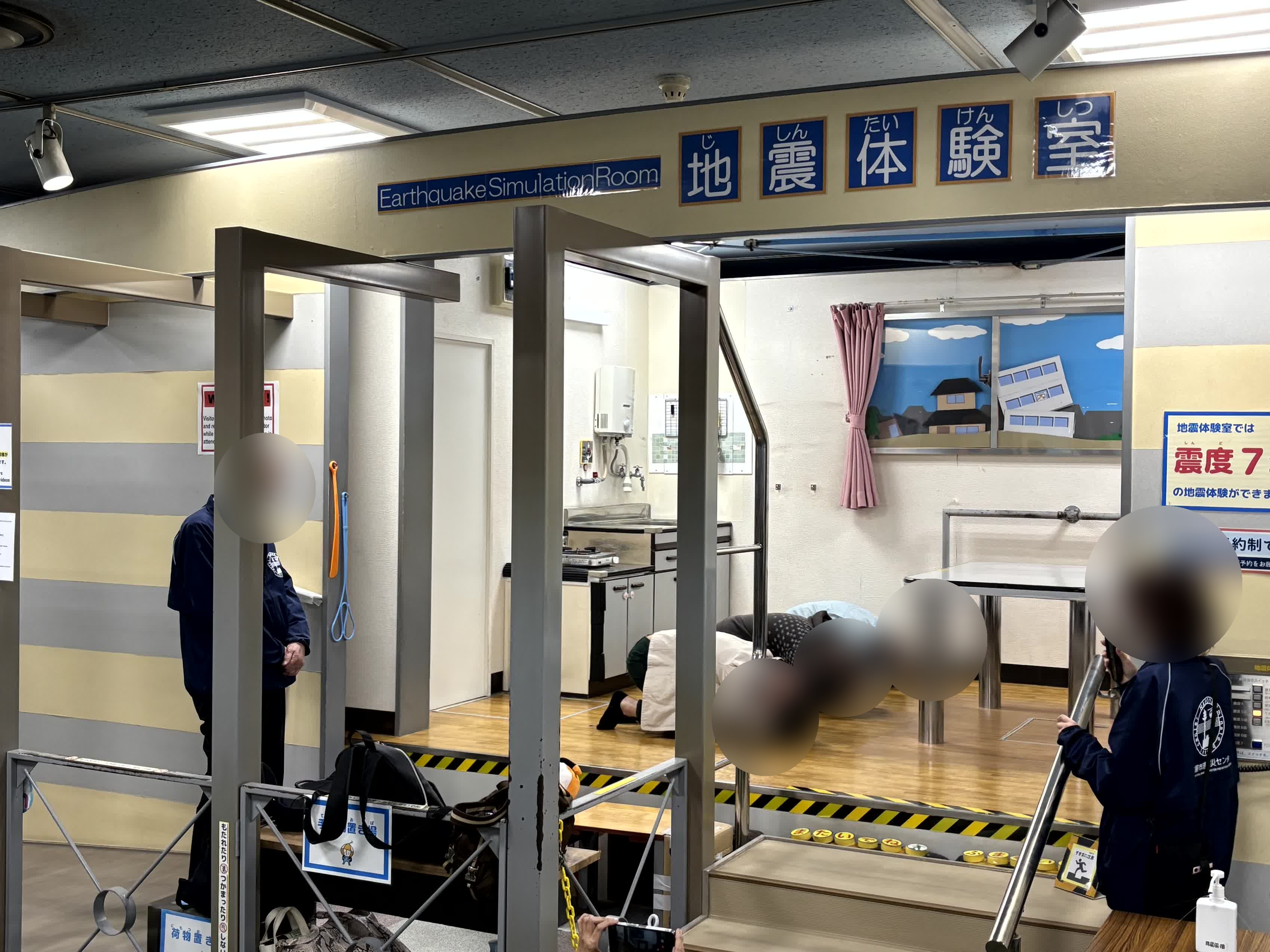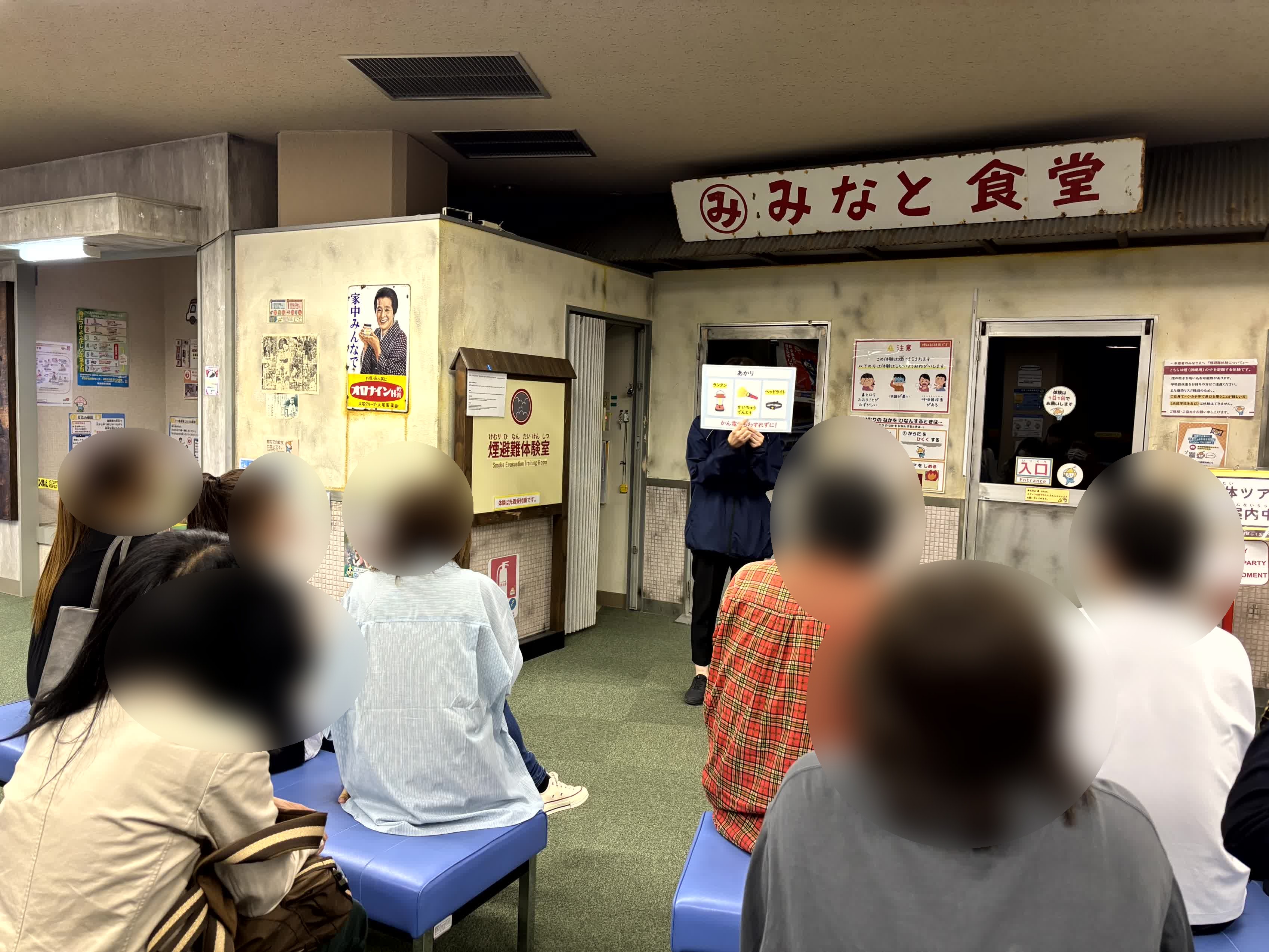 地震体験、伊勢湾台風記録映像、煙からの避難などを体験し、