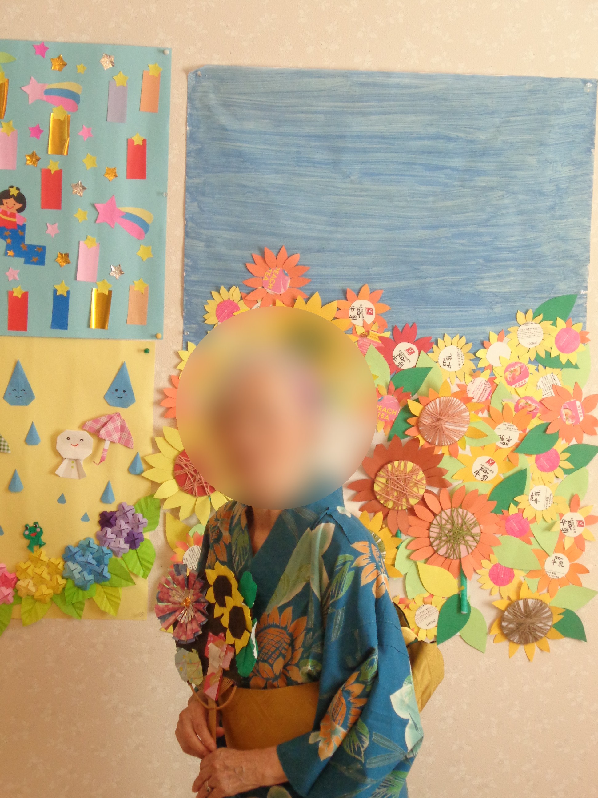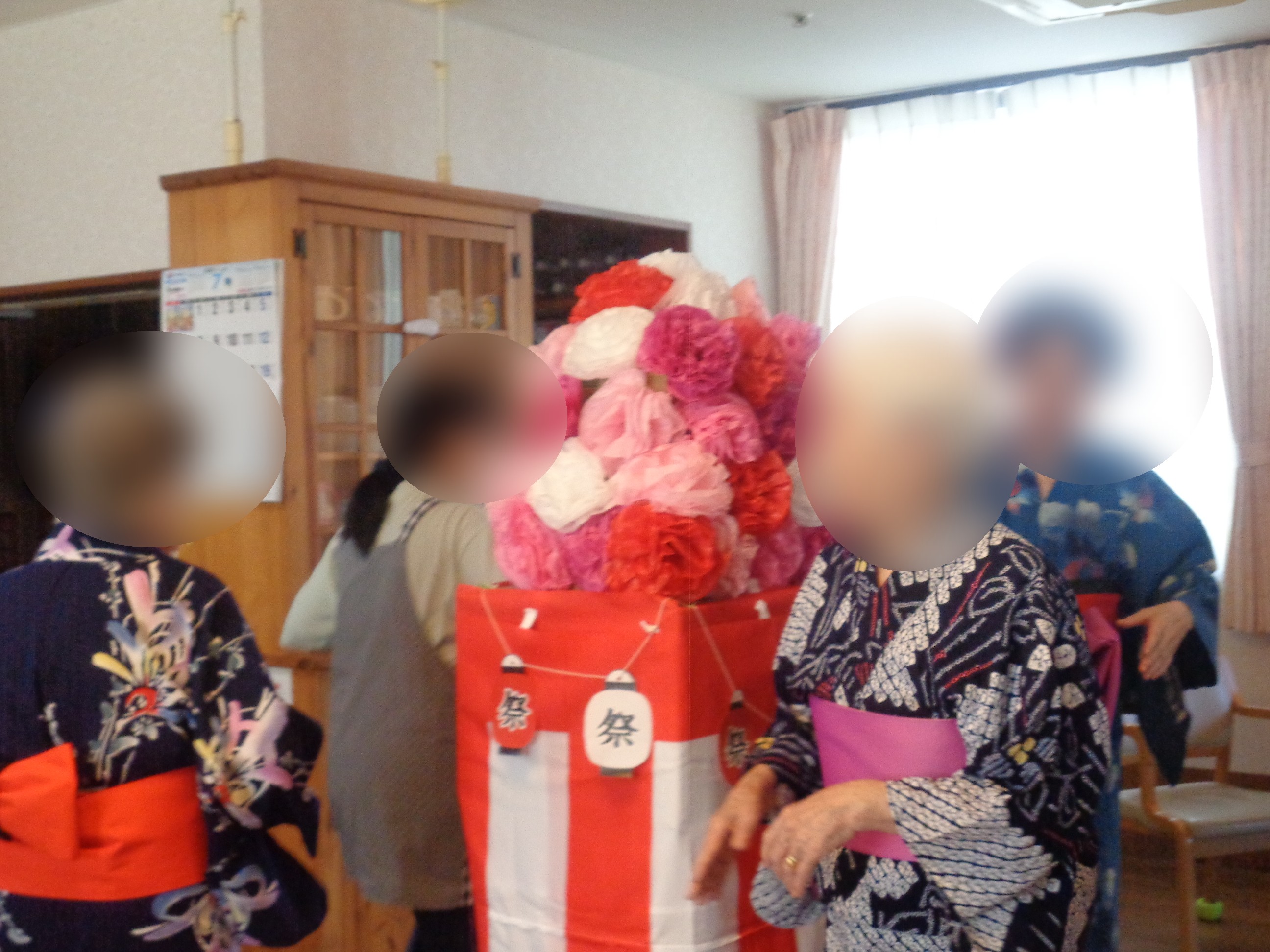 手作りうちわや他利用者様の浴衣姿に目移りしてしまい、目線が合わなかったりと