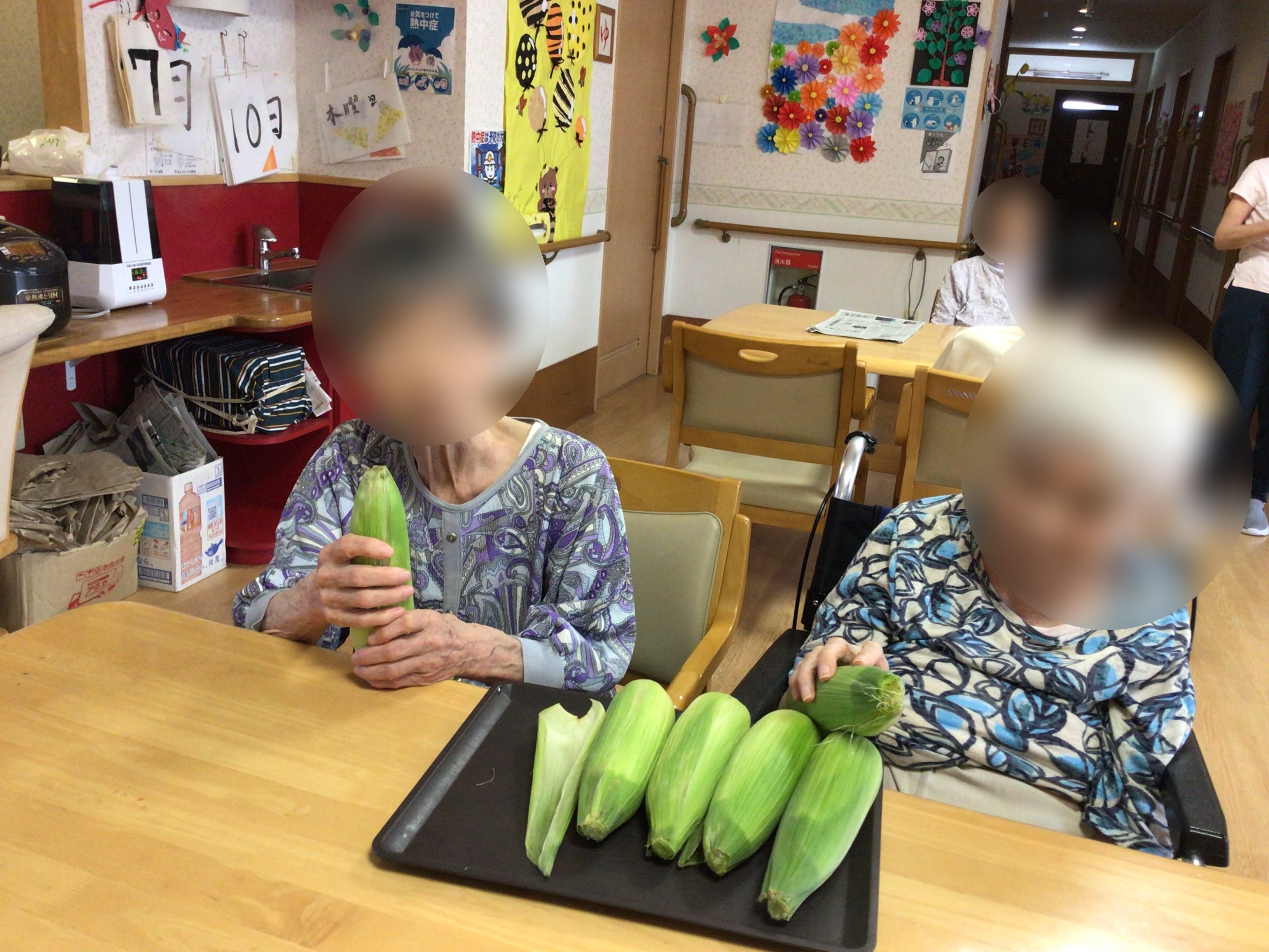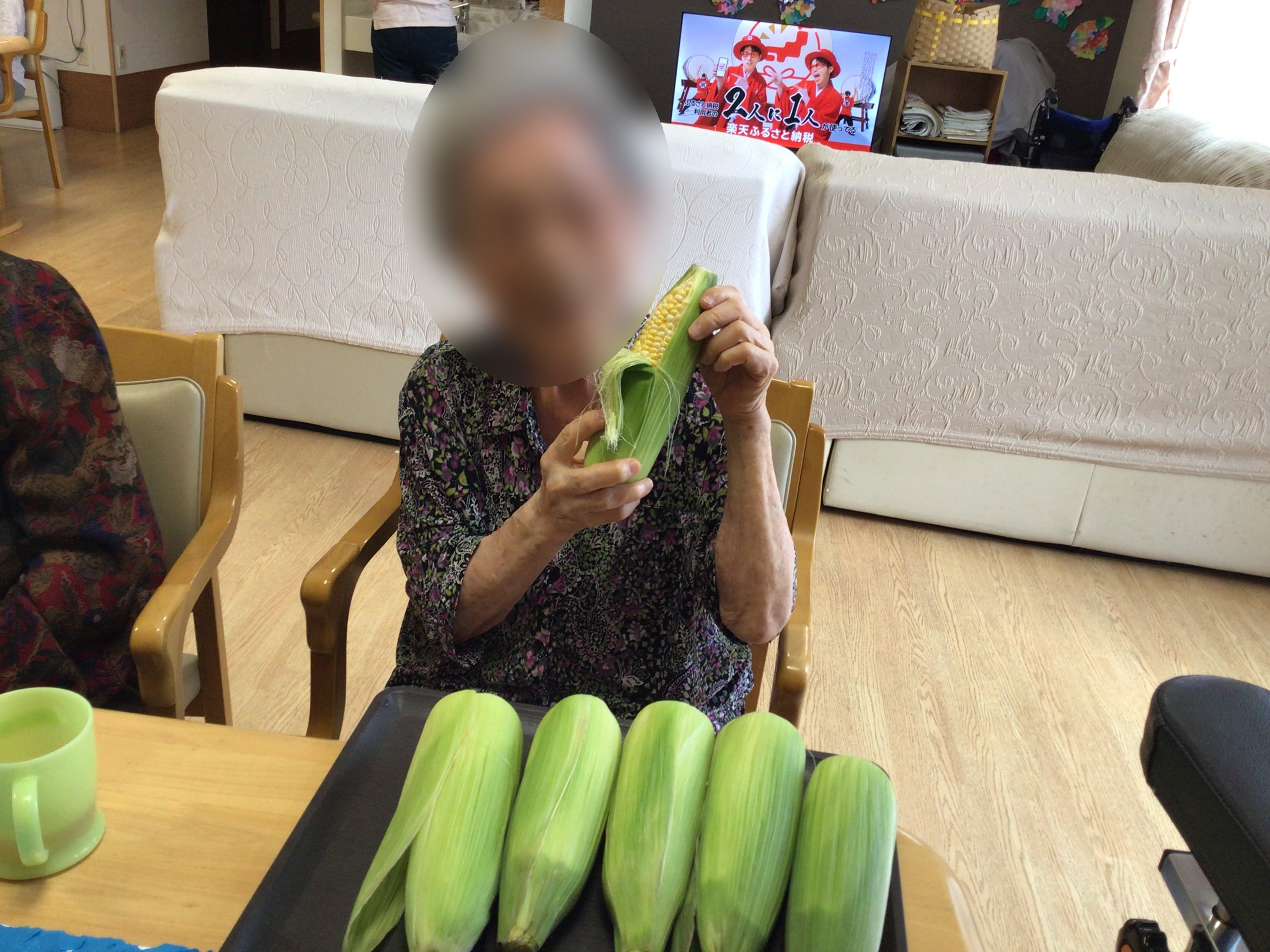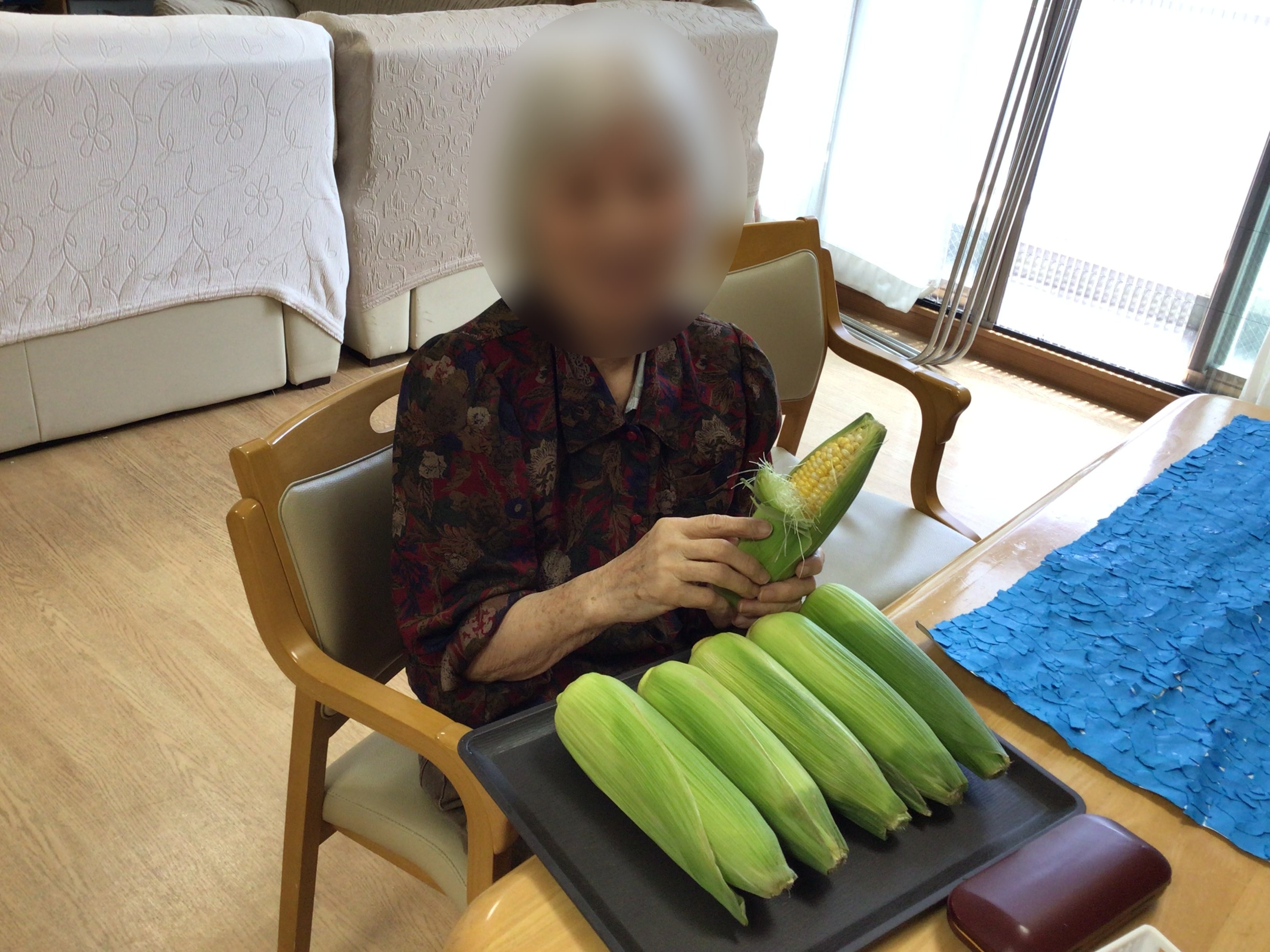 小規模利用者様の家族様より頂きました、とうもろこしと一緒にパチリ