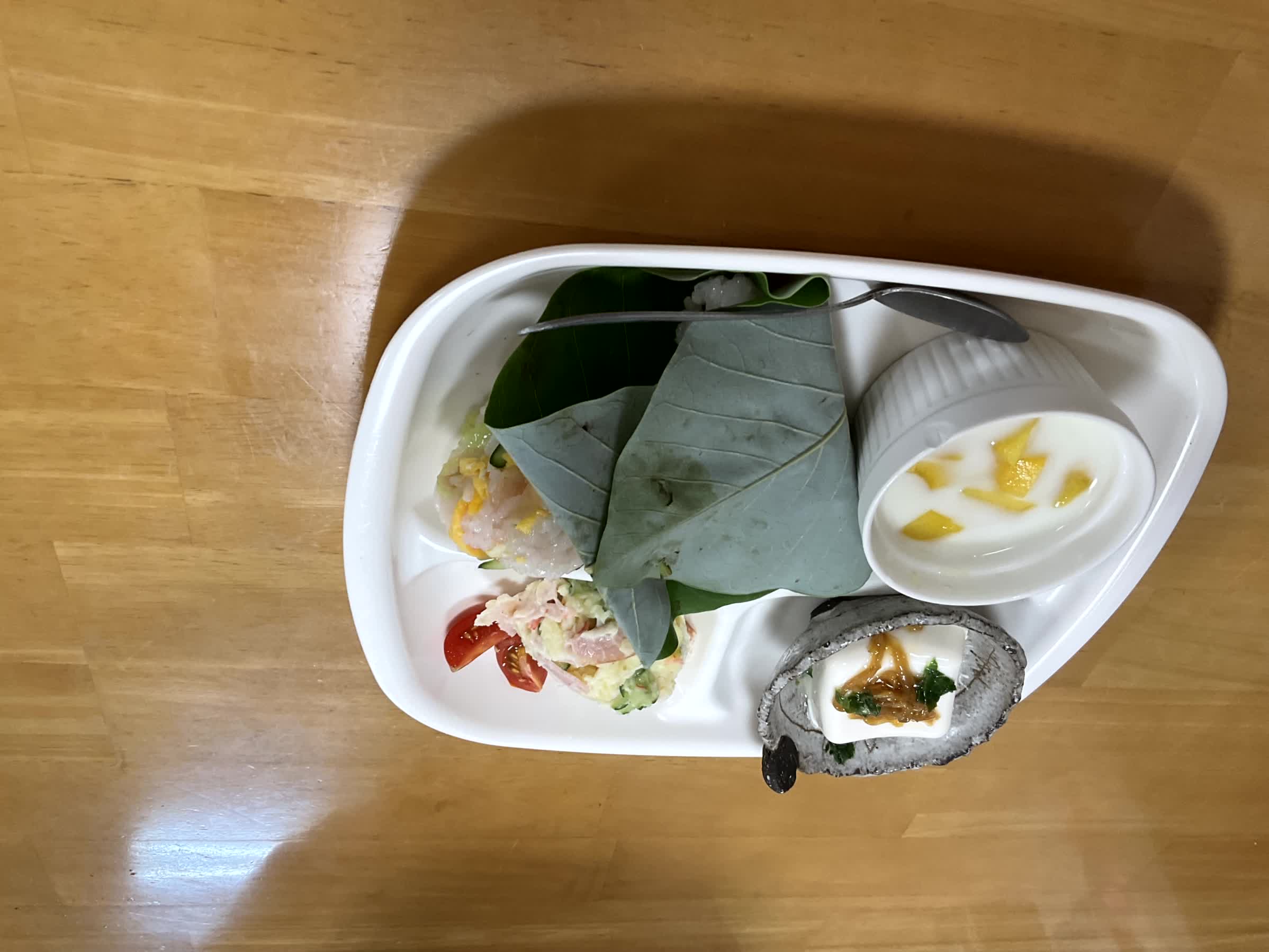 ホオノキ(朴の木)の葉に酢飯と具材を