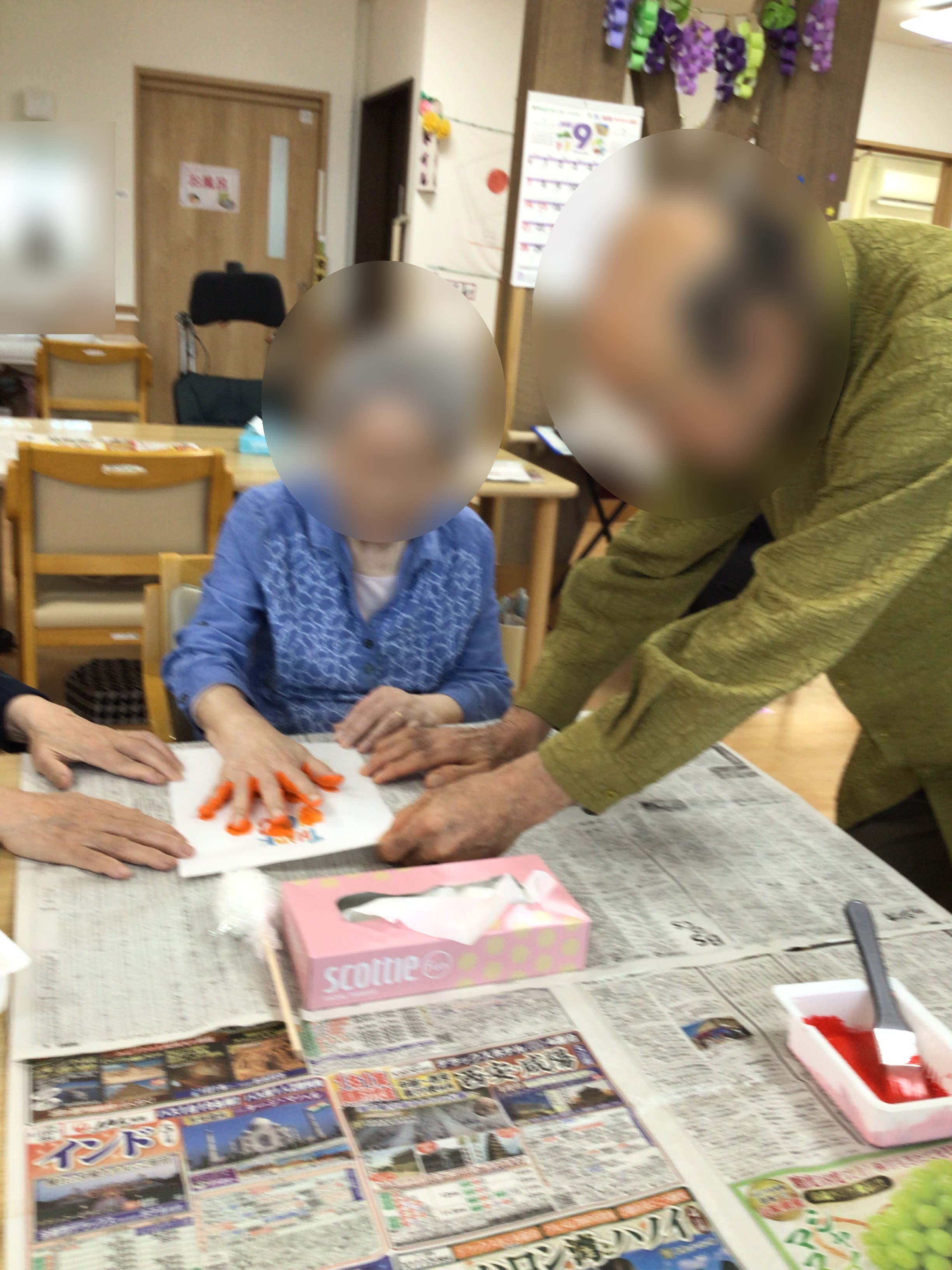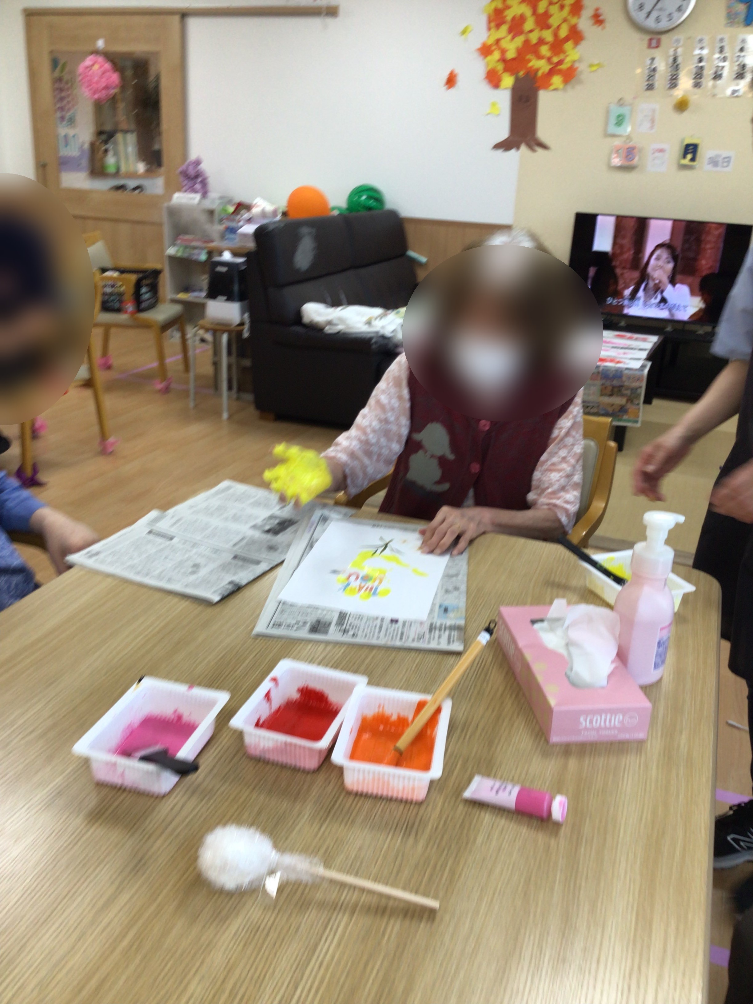 敬老の記念の為、お手形アートを皆様と一緒に行いました