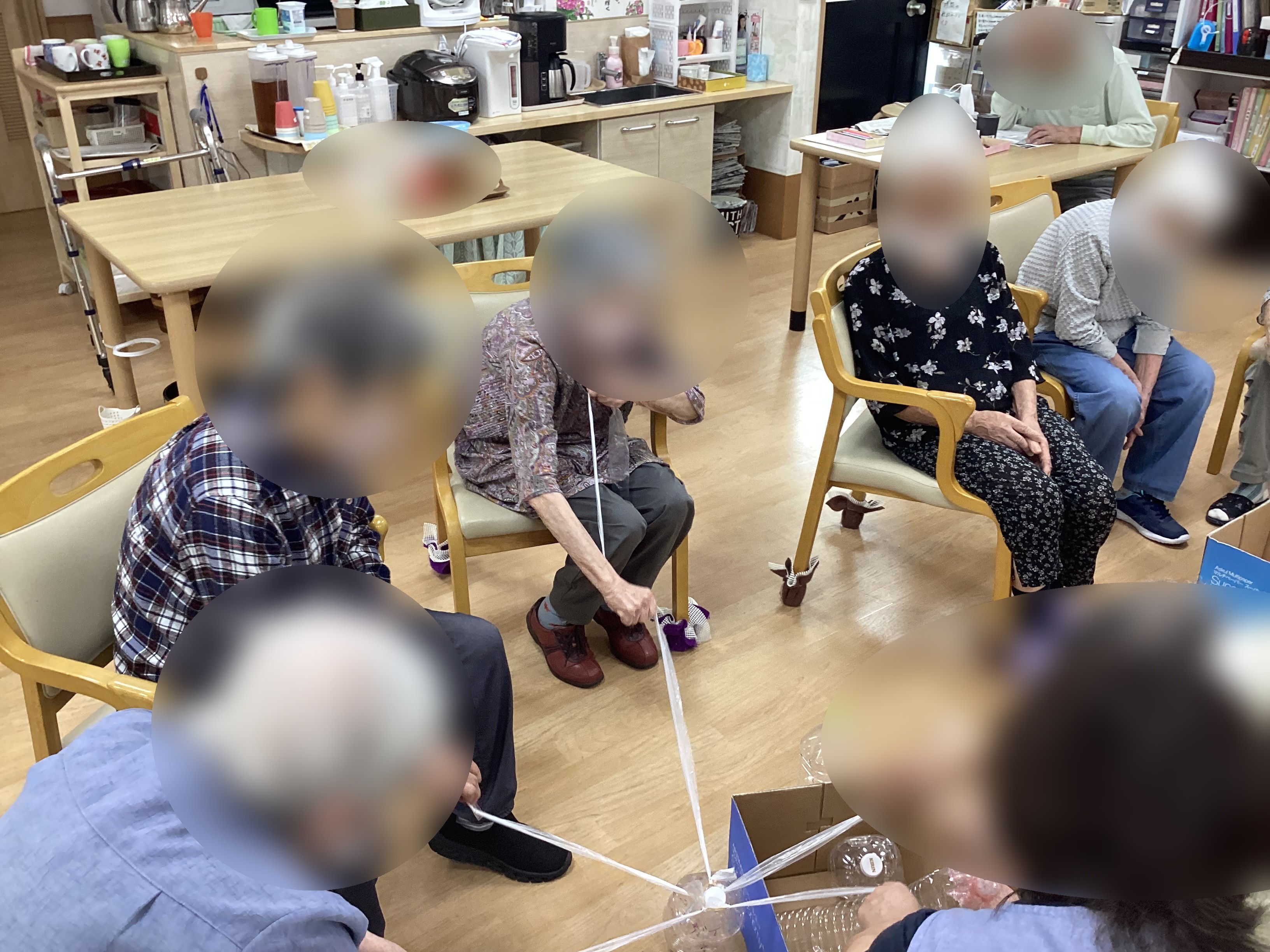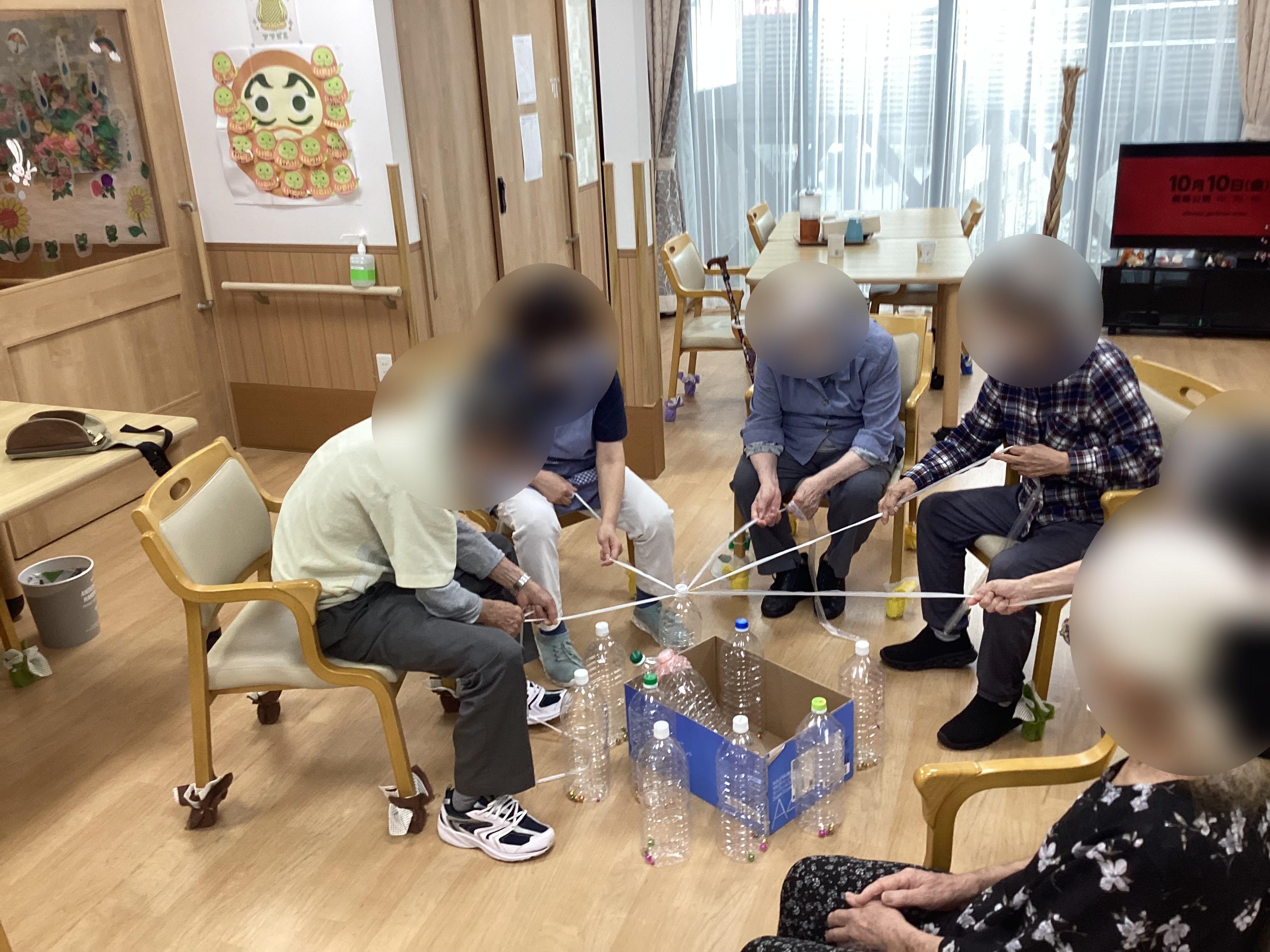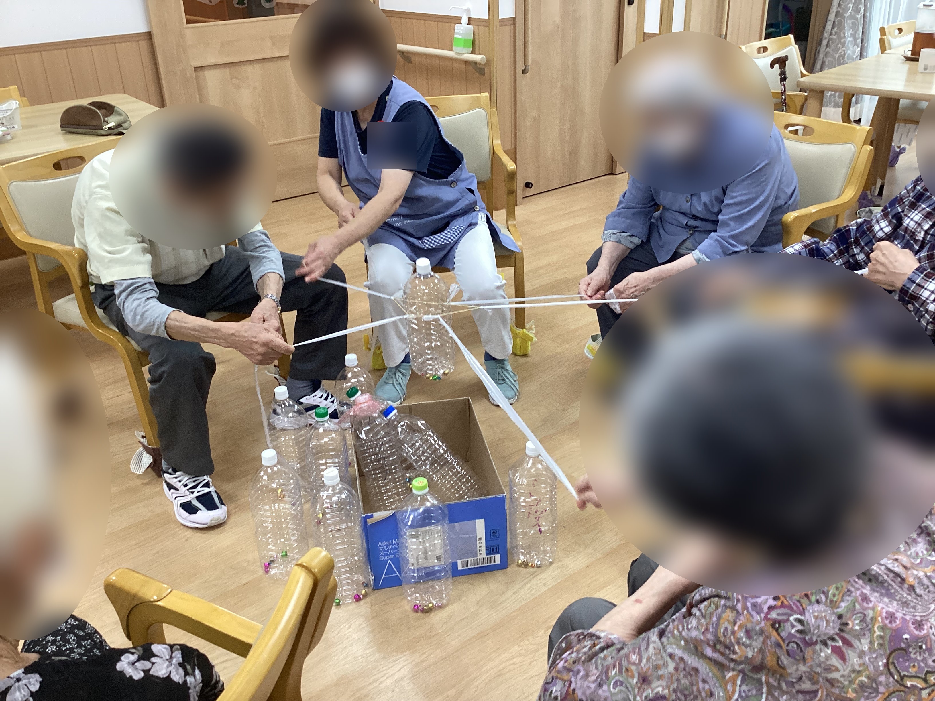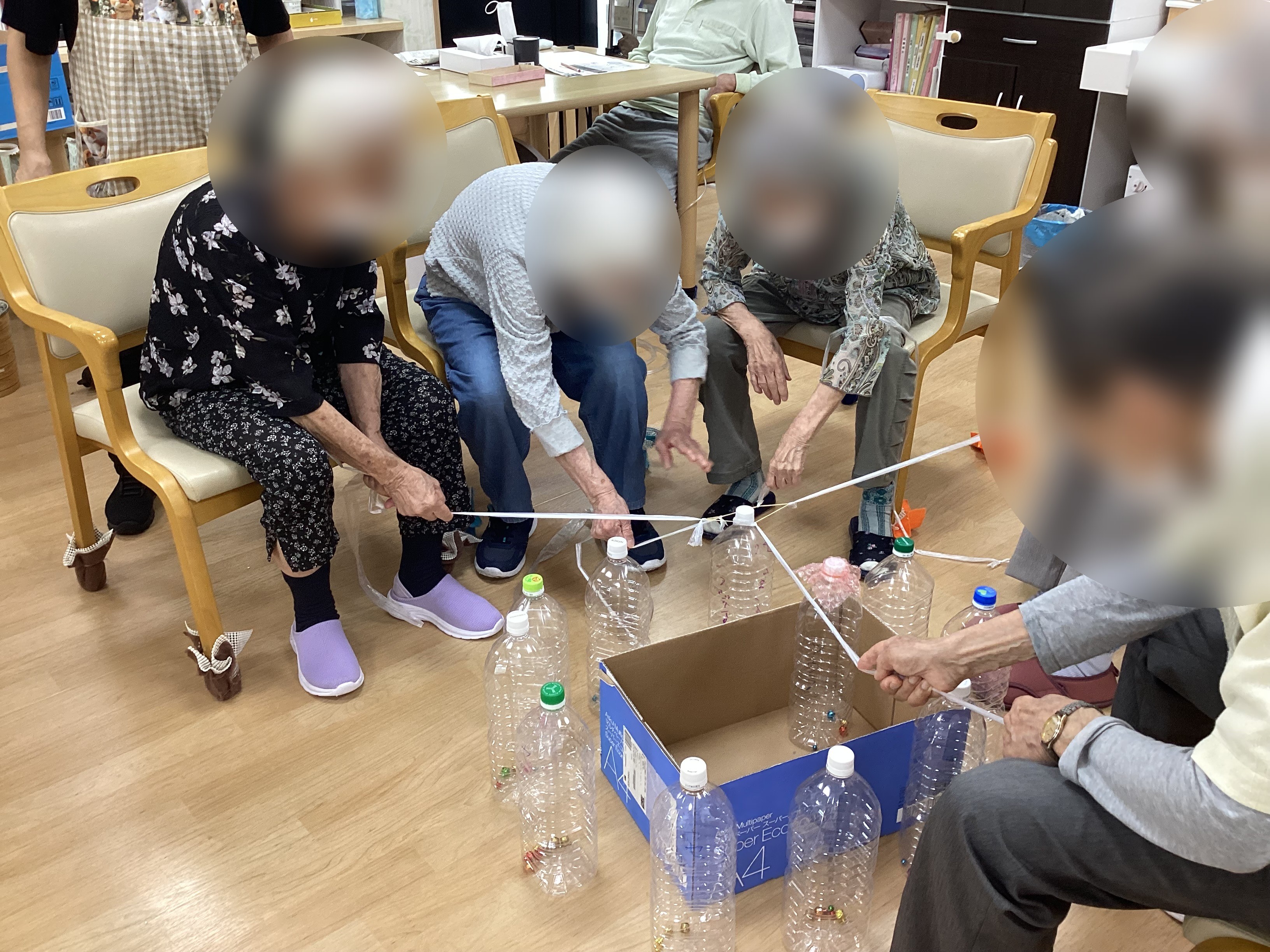 皆様で力を合わせ、ペットボトルを運ぶゲームを行いましたhappy01