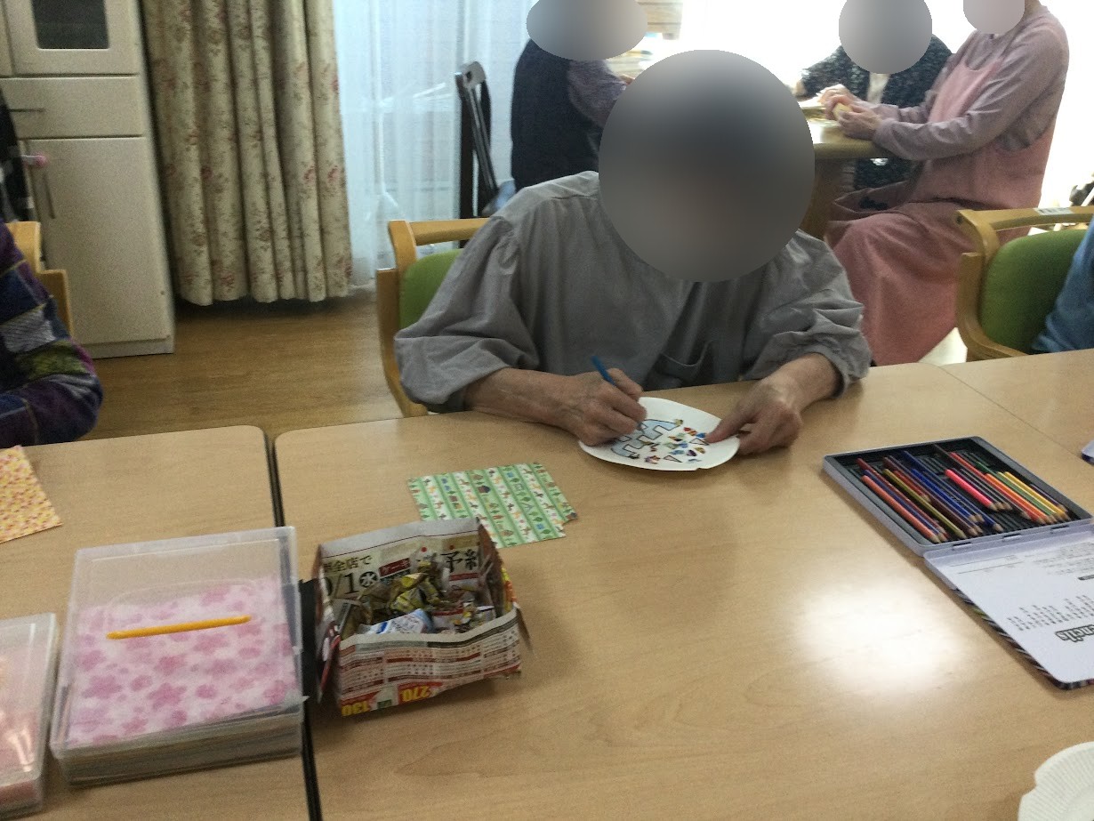 紙皿に色を塗ったり色紙を貼ったりして、皆さん思い思いに作られていましたhappy01heart04