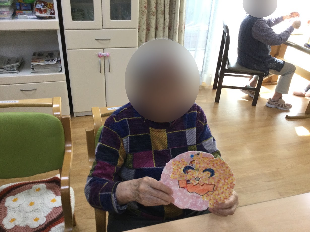 10/6 1階と2階の利用者様合同でハロウィーンの工作レクをしましたshine
