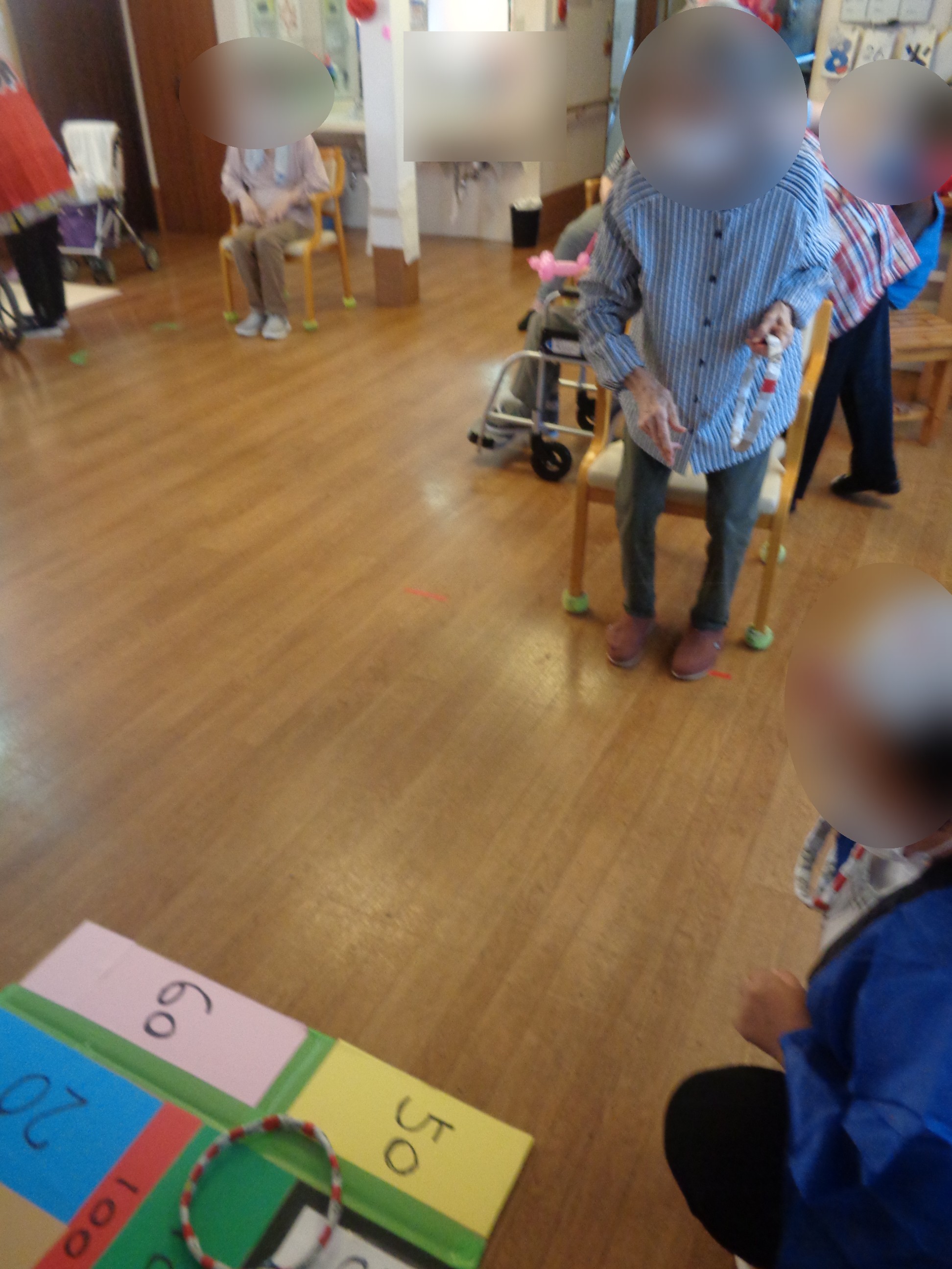 輪っかを投げることが難しいご利用者様には風船を打ち返して頂き、その風船が