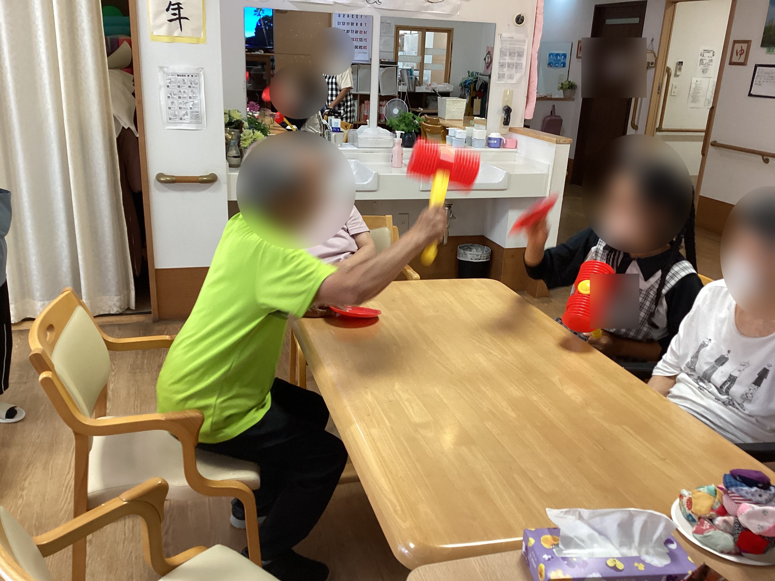 スタッフと利用者様で叩いて被ってじゃんけんぽんゲームをしました