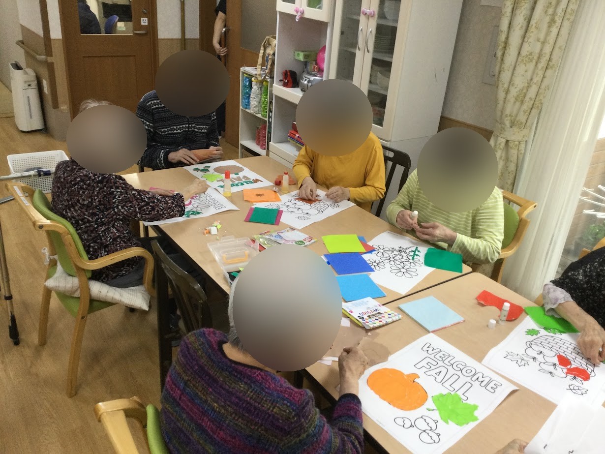 10/15は3種類ほどの秋のイラストから選んで頂き、ちぎり絵をしましたflair