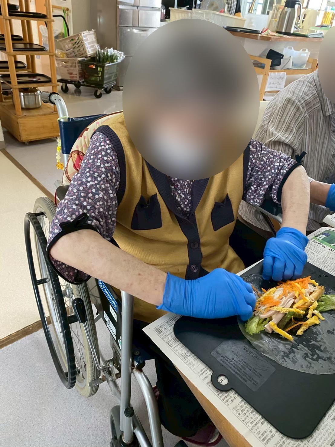 と入居者様も興味深々でお手伝いしてくださりました